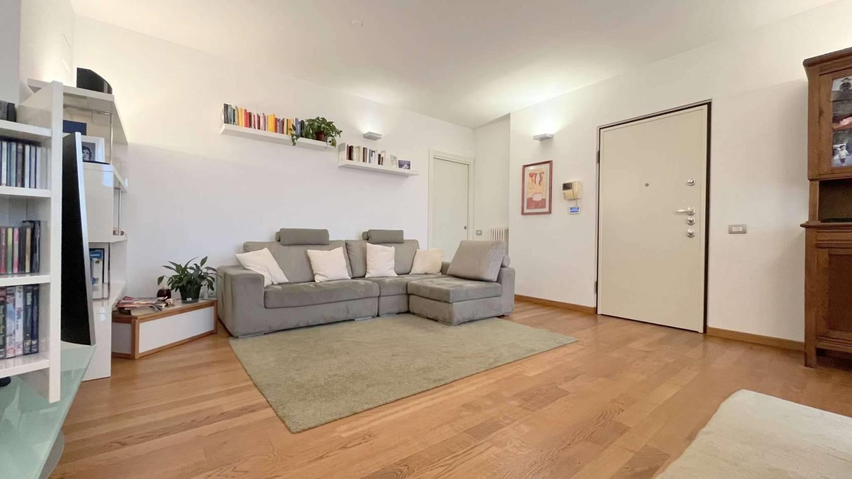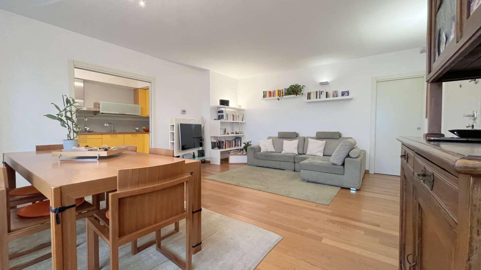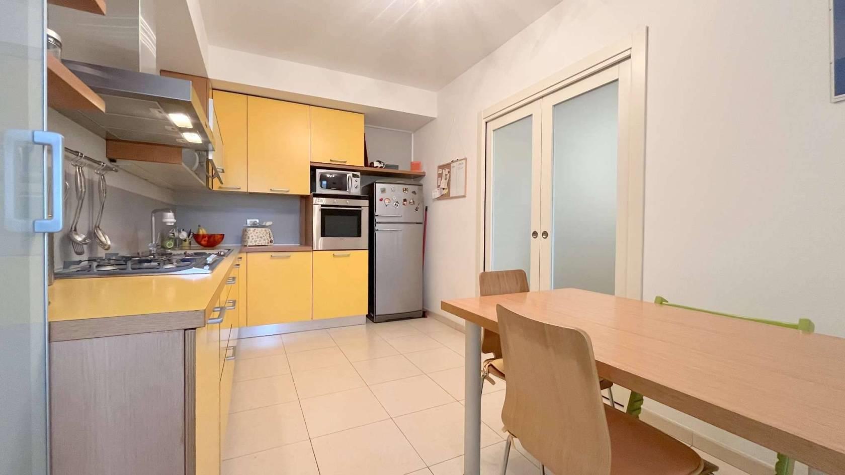 TIPOLOGIA: appartamento posto al piano primo servito da ascensore, composto da ingresso, soggiorno, zona pranzo, balcone, cucina abitabile, disimpegno, bagno, 2 camere, bagno/lavanderia oltre a cantina e box doppio in larghezza ad uso autorimessa al piano interrato.