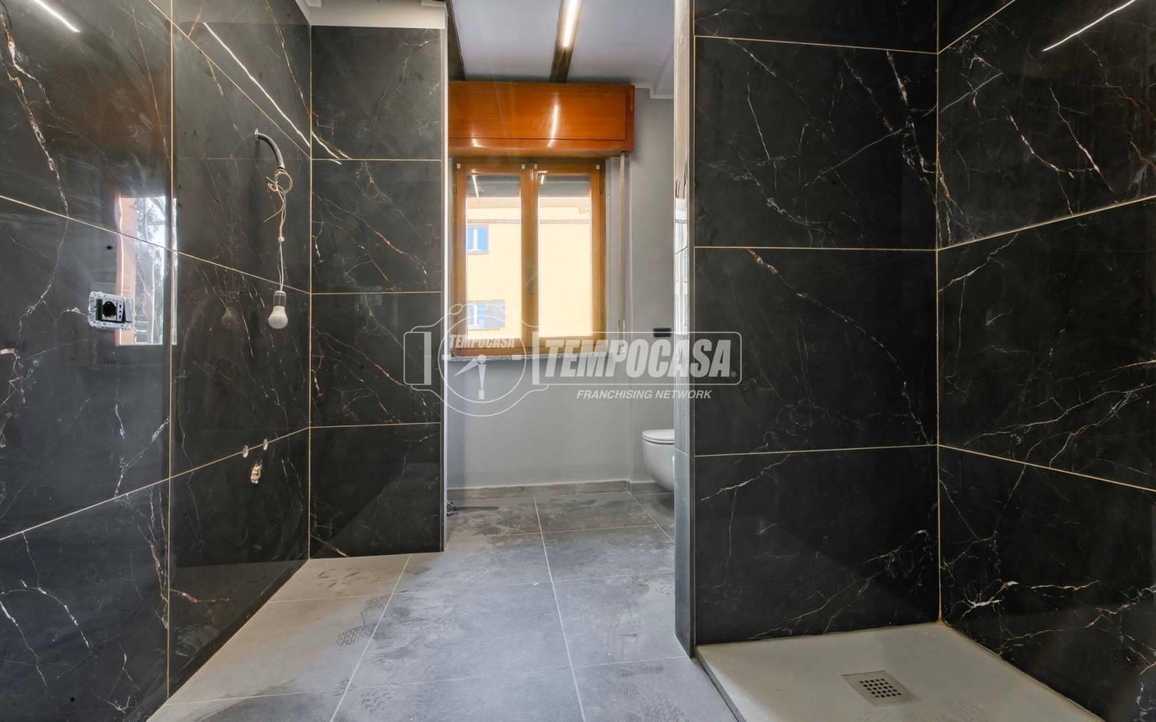 Il bagno, moderno e funzionale, è dotato di box doccia, mentre la camera matrimoniale offre comfort e tranquillità.
