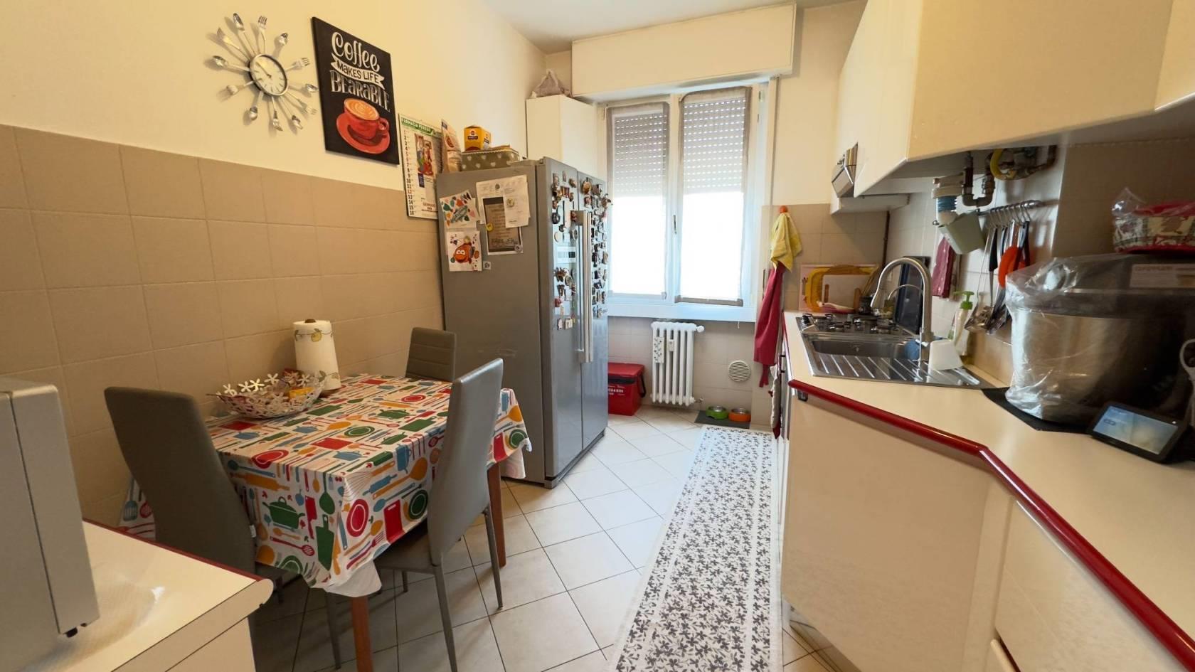Vimercate, in posizione strategica e centrale a due passi dai principali servizi, proponiamo appartamento di quattro locali di mq.108 completamente ristrutturato nel 1998 sito al secondo piano di una palazzina priva di ascensore composto da ingresso, cucina abitabile, soggiorno con balcone, tre camere da letto e doppi servizi. La soluzione si presenta in ottimo stato di manutenzione ed è dotata di tripla esposizione nord/sud/ovest che garantisce luminosità e un'ottima esposizione al sole. L'impianto di riscaldamento è centralizzato con termovalvole e contabilizzatori di consumo e le spese condominiali indicate comprendono anche la quota fissa del riscaldamento a regime. Completa la proprietà un box singolo al prezzo di Euro 13.000 sito al piano terra. Appartamento attualmente dato in locazione e occupato da inquilino con regolare contratto scadente il 31 ottobre 2026 e quindi libero da questa data.