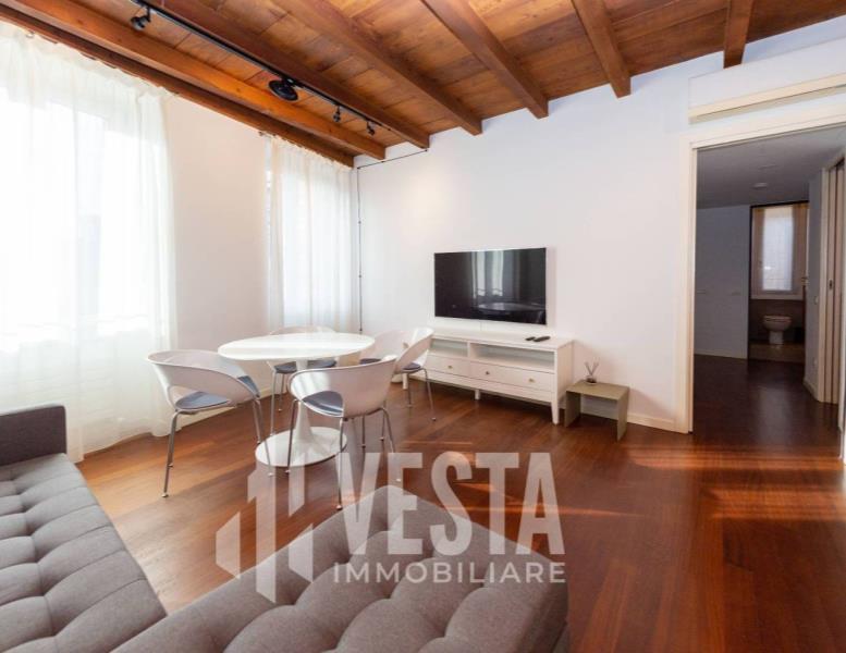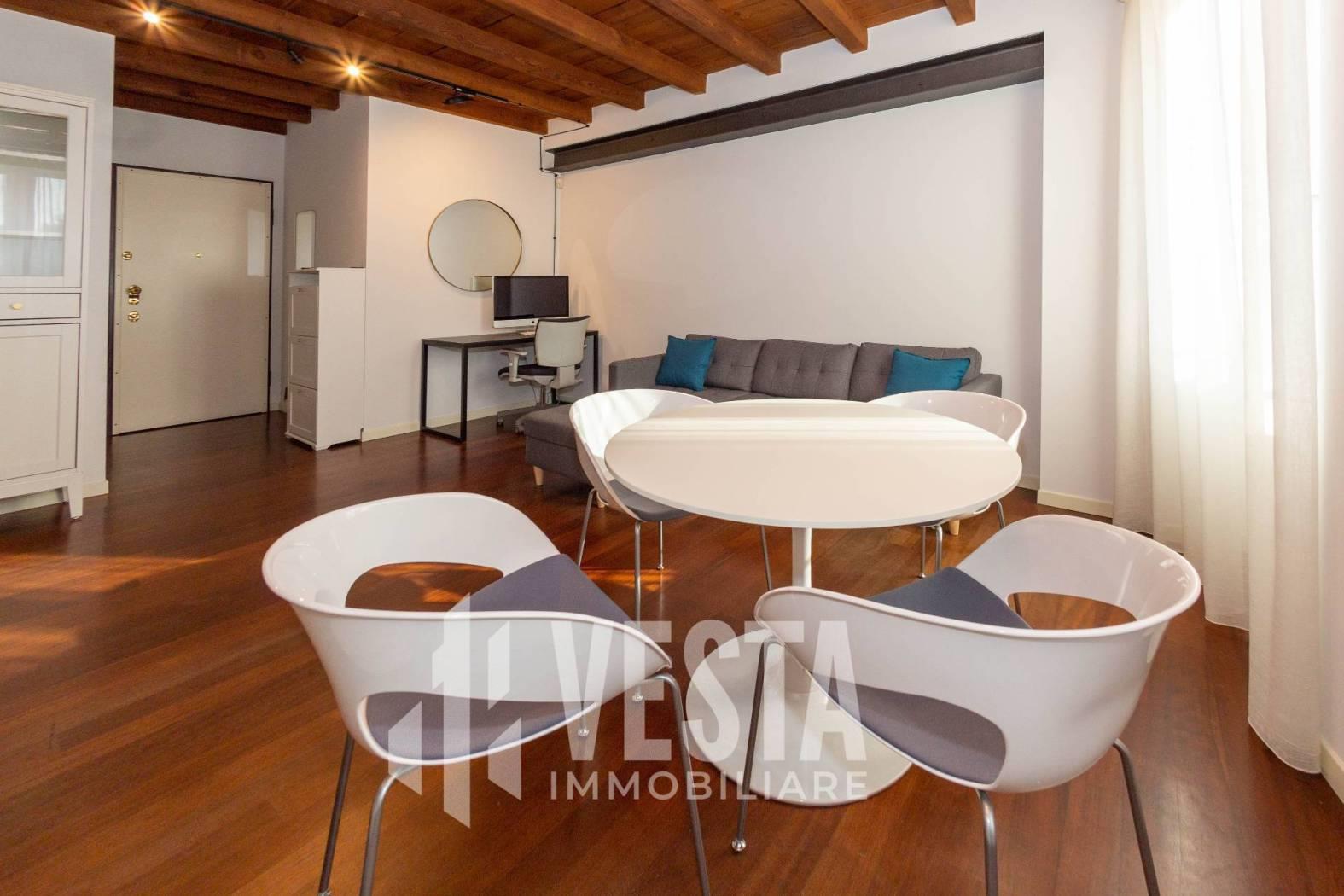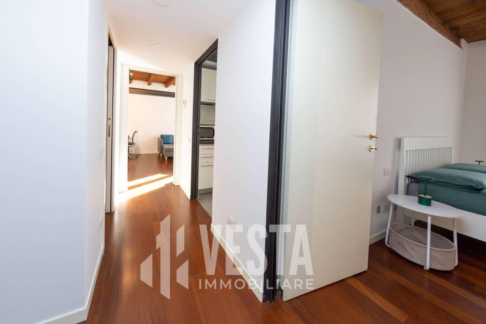 La comodità di avere tutto, a due passi dal centro, 86 mq in tipico contesto a ringhiera, finemente ristrutturato con travi a legno a vista.