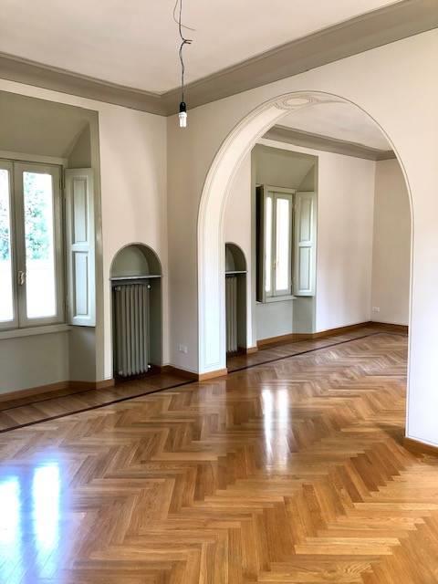 Monza, con affaccio sui BOSCHETTI REALI a pochi passi dal Centro storico e dal Parco di Monza, in zona tranquilla ed immersa nel verde, in prestigiosa ed elegante VILLA d'epoca, inserita in 100.000 mq di parco privato, proponiamo APPARTAMENTO in LOCAZIONE di circa 180 mq posto al primo ed ultimo piano, completamento ristrutturato, composto da: doppio ingresso, ampio e luminoso salone, cucina abitabile, locale guardaroba, 3 camere, 3 bagni.