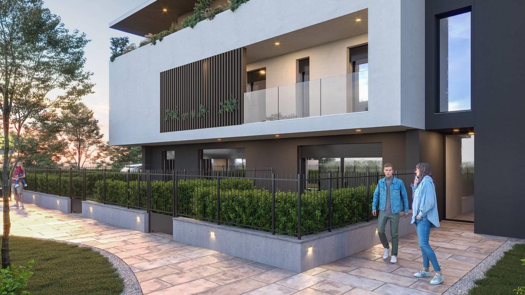 Bernareggio - In minipalazzina di design prestigioso appartamento al piano terra con giardino privato di 120 mq. L'unità immobiliare ha una superficie commerciale pari a 59 mq ed è suddivisa in soggiorno con grande vetrata panoramica sul giardino privato, cucina a vista, camera matrimoniale e bagno. Grazie all'utilizzo di materiali di alta qualità e all'impiego di tecnologie di ultima generazione, questa soluzione abitativa è moderna e confortevole. Il riscaldamento è autonomo e alimentato da una pompa di calore con l'accumulo dell'acqua calda sanitaria. Pannelli fotovoltaici posati sulla copertura dell'edificio dedicati ad ogni singola unità abitativa. L'impianto di riscaldamento è a pavimento e assicura un'ottima distribuzione del calore in ogni ambiente. Gli infissi sono in PVC, hanno un vetro triplo con gas argon e garantiscono un ottimo isolamento sia termico che acustico. L'appartamento ha una doppia esposizione est-ovest, ed è illuminato naturalmente durante tutto l'arco della giornata.