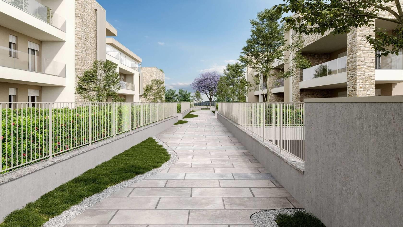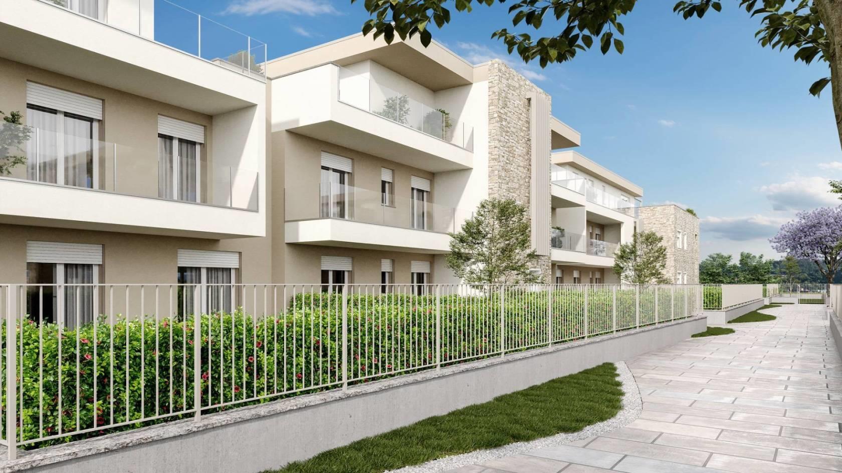 Bernareggio - In prestigiosa minipalazzina disponiamo di elegante appartamento ubicato al piano terra con giardino privato di 175 mq. L'immobile in oggetto è composto da 3 locali, doppi servizi ed è suddiviso in un ampio salone con vetrata panoramica sul porticato di generose dimensioni e giardino, una cucina abitabile aperta, due camere, due bagni ed uno spazioso giardino. Ottimo investimento € 285.000,00 - Box doppio in larghezza ad € 40.000,00.