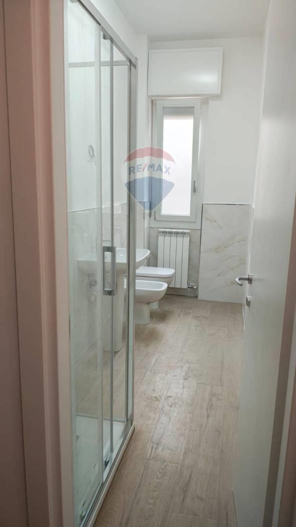 L'ingresso direttamente sul corridoio che distribuisce gli ambienti, bagno con ceramica effetto marmo e box doccia in vetro temperato oltre ad allaccio lavatrice e spazio per incolonnamento asciugatrice, cucina abitabile con caldaia nuova a condensazione, ampia camera da letto/giorno.