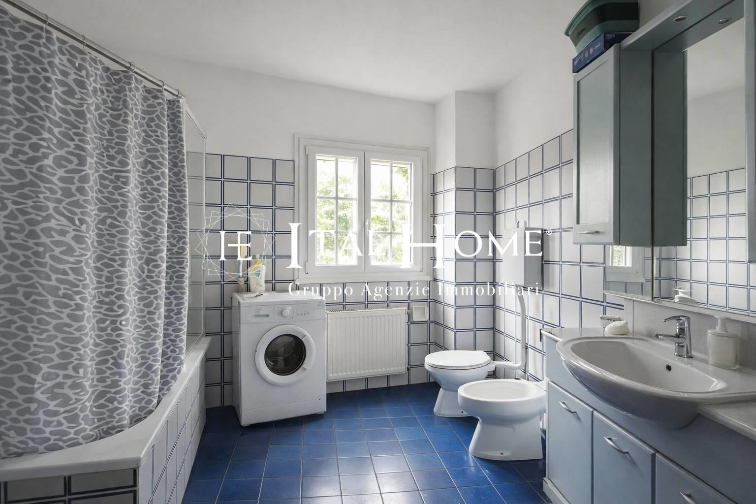 Il bagno finestrato è completo e funzionale, con spazi ben sfruttati.