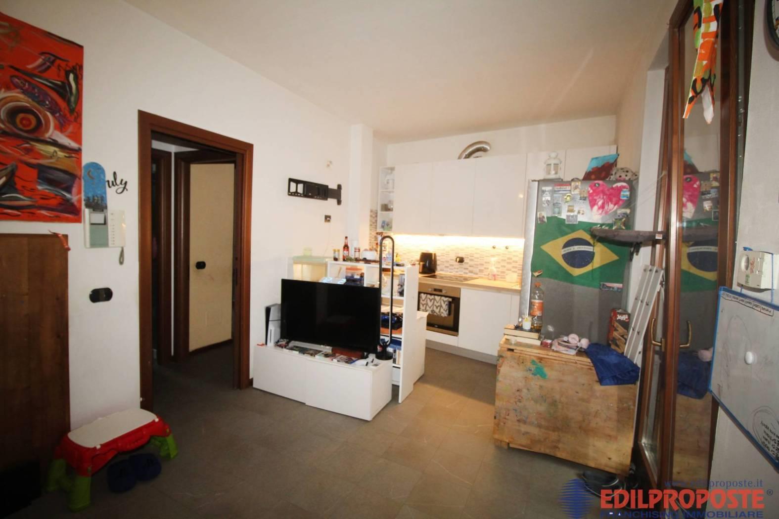 Soggiorno con angolo cottura, luminoso e ben distribuito