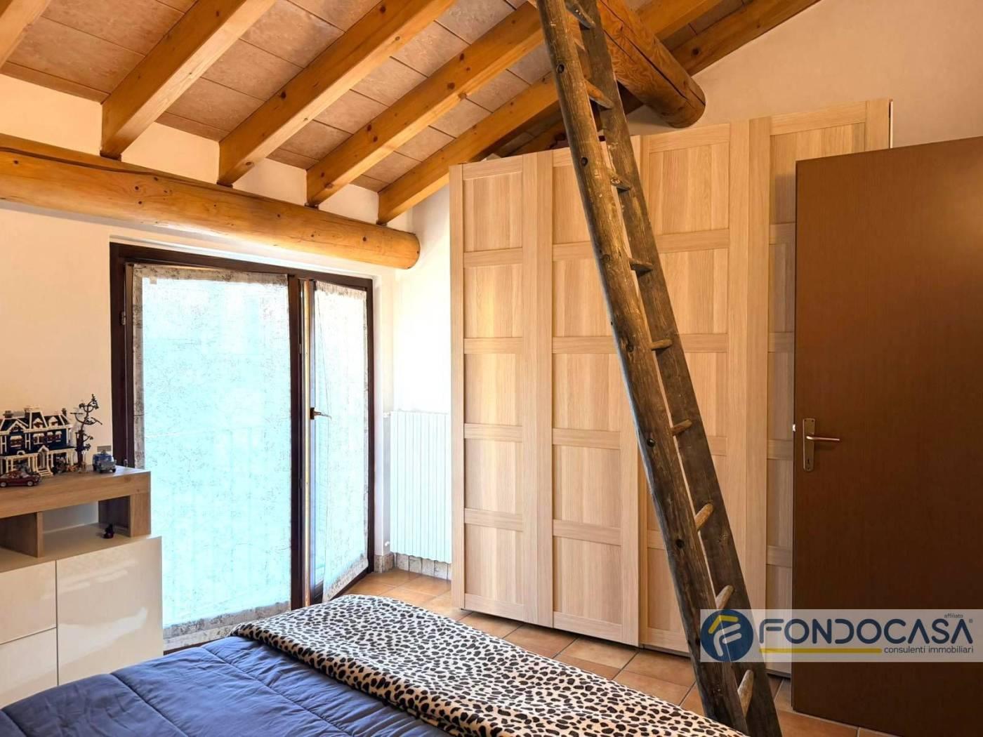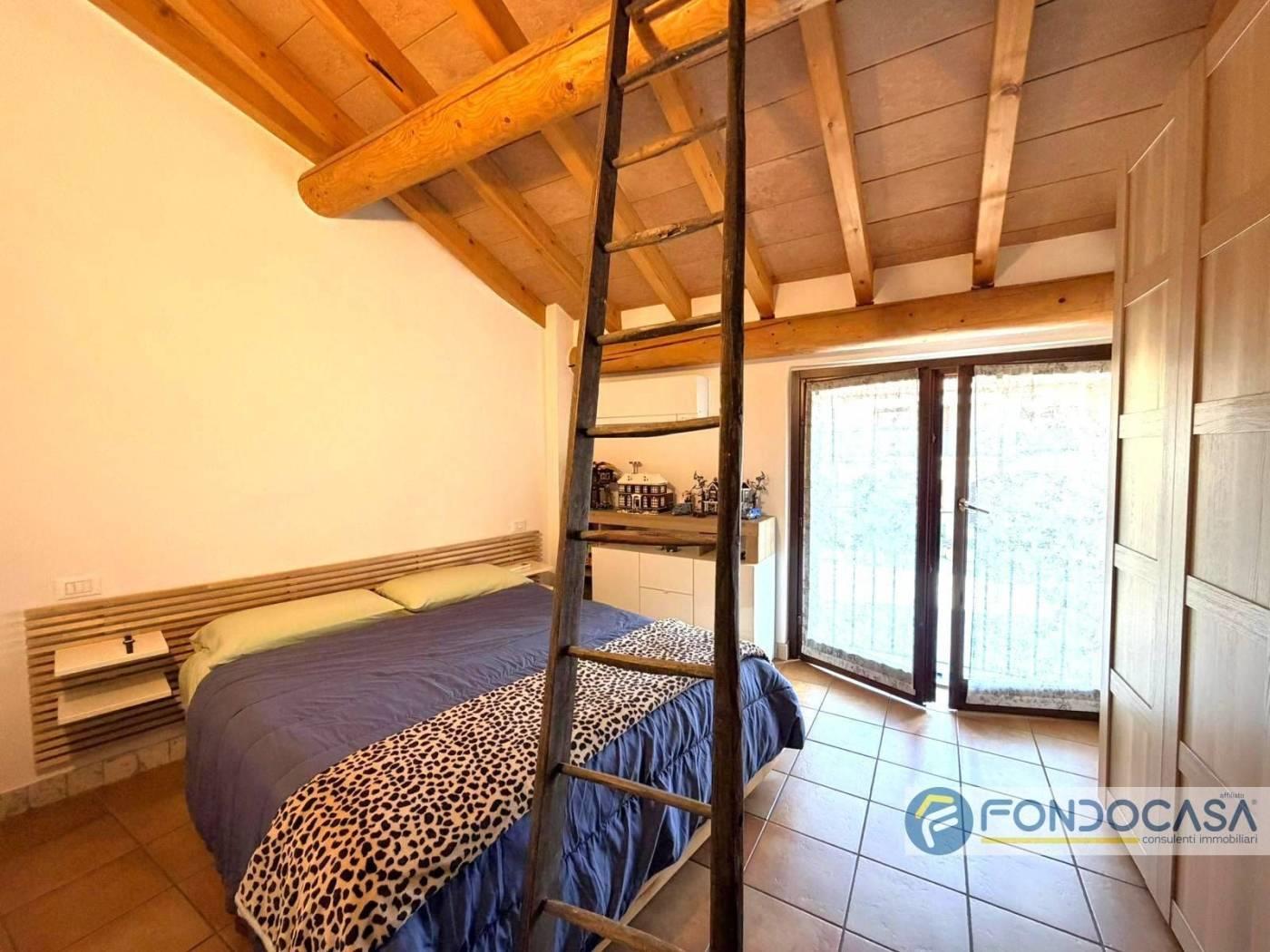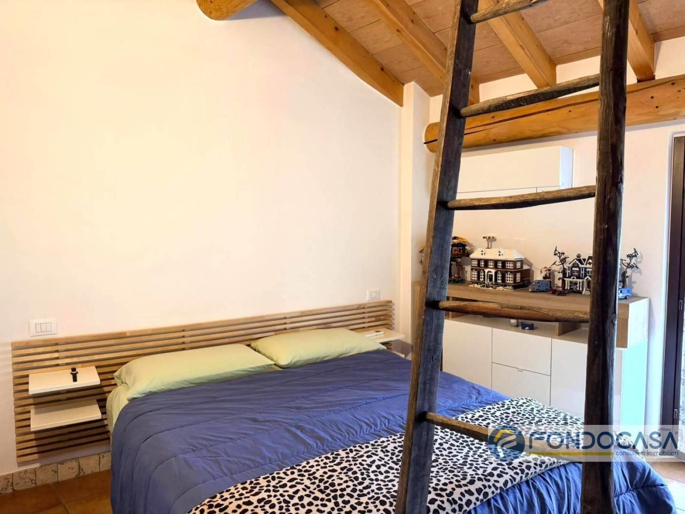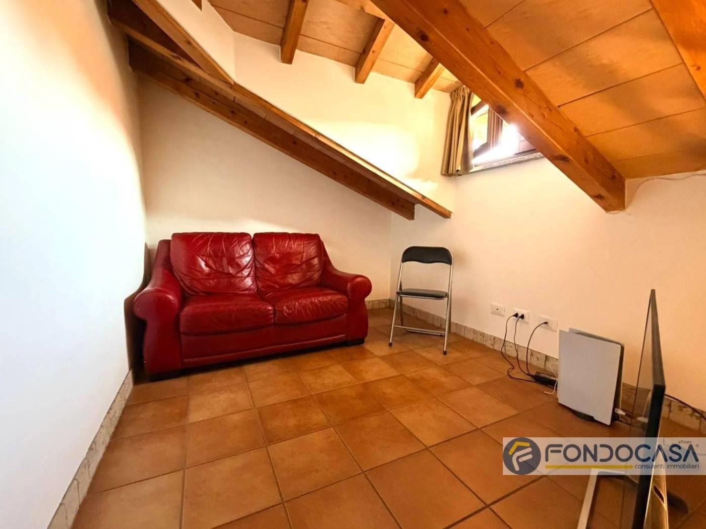 L'appartamento è caratterizzato da travi a vista che rendono l'ambiente caldo ed accogliente e viene venduto parzialmente arredato.