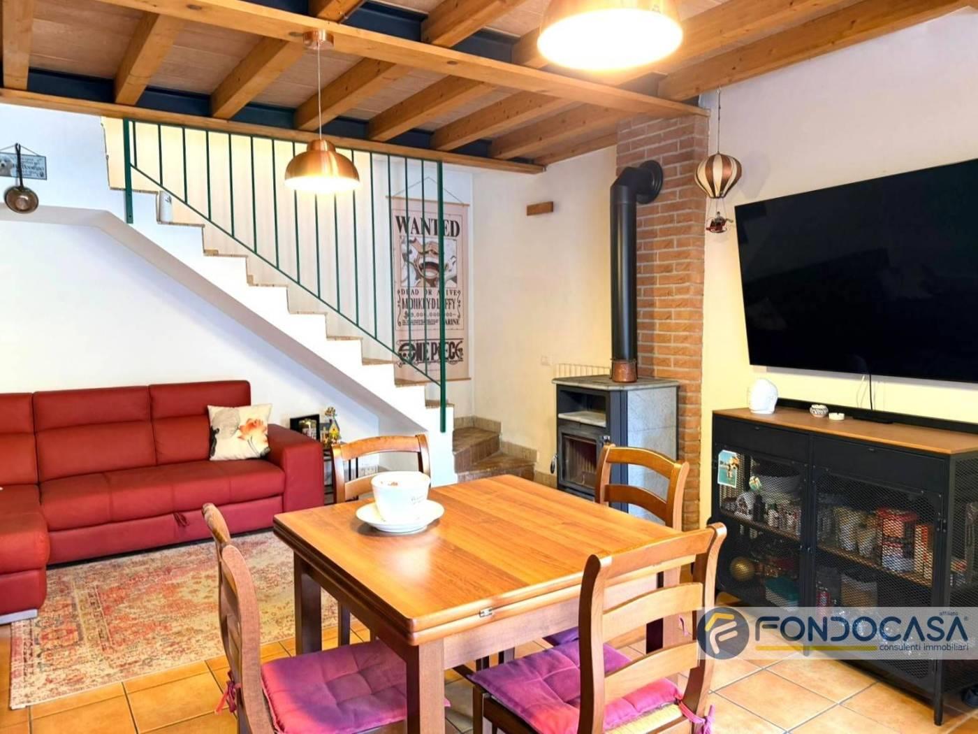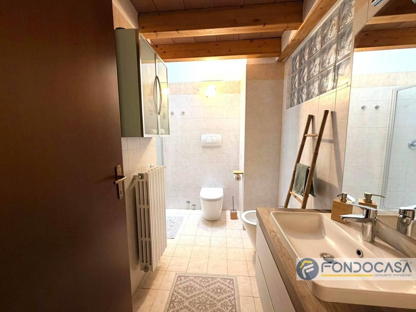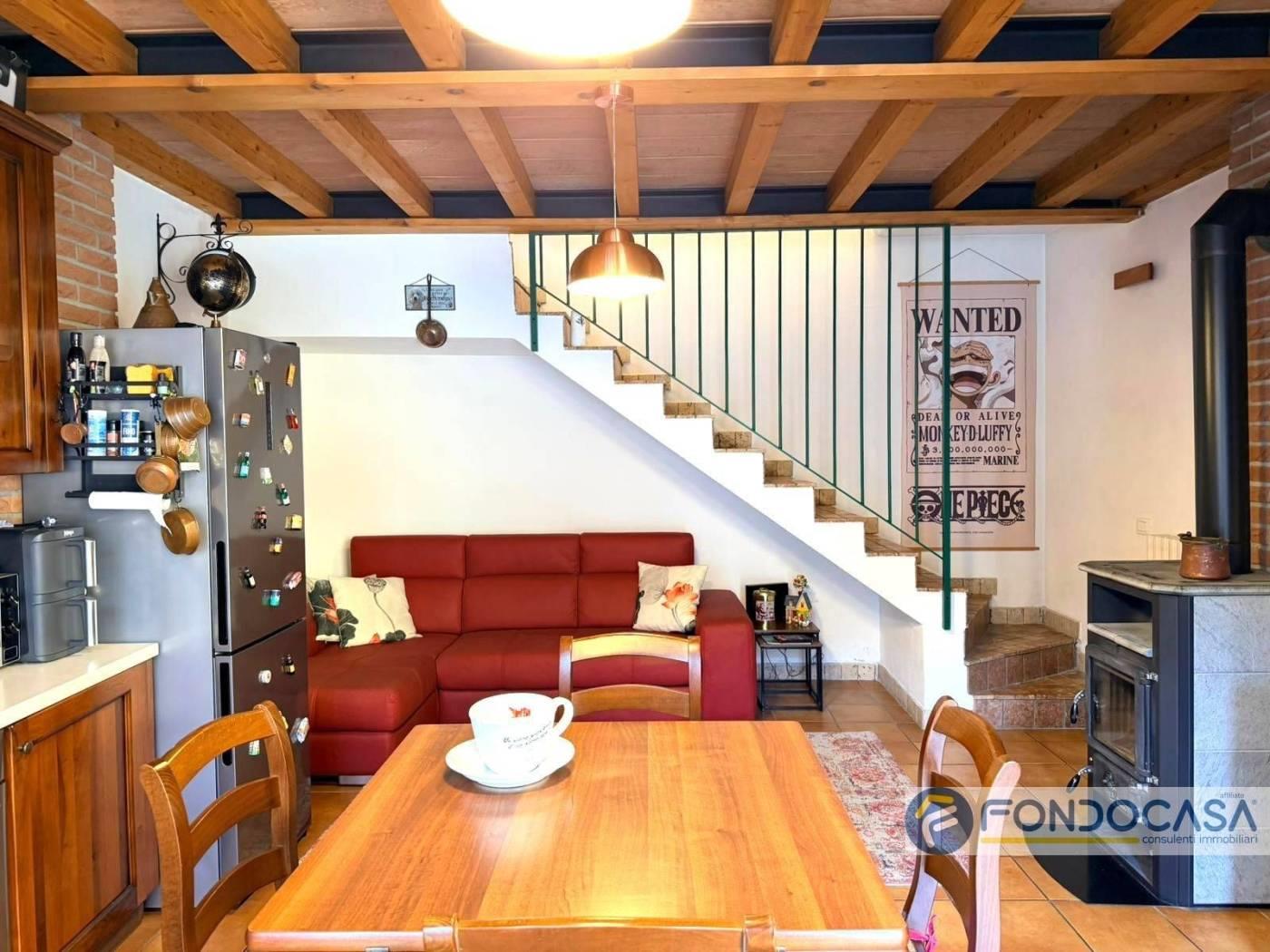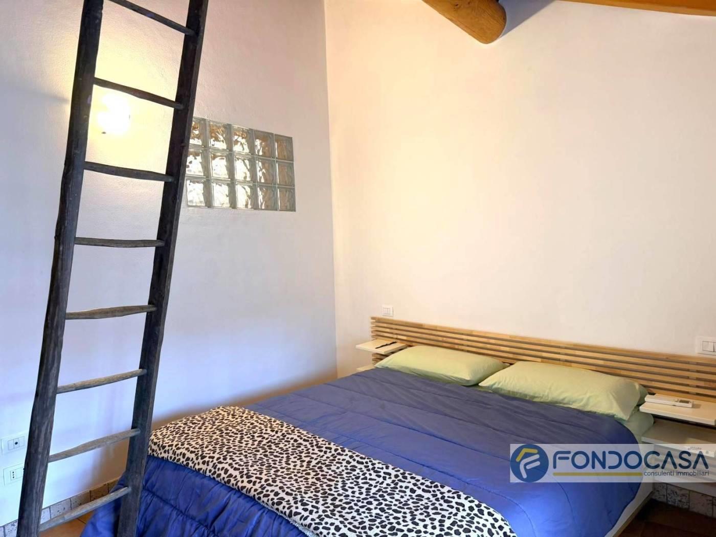 L'appartamento è caratterizzato da travi a vista che rendono l'ambiente caldo ed accogliente e viene venduto parzialmente arredato.