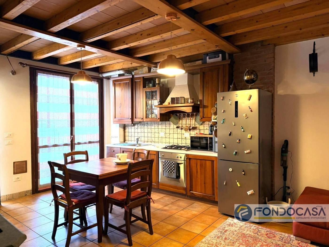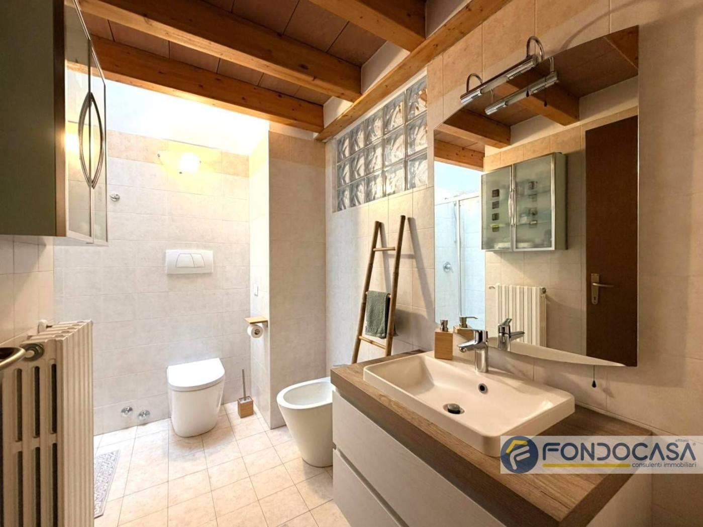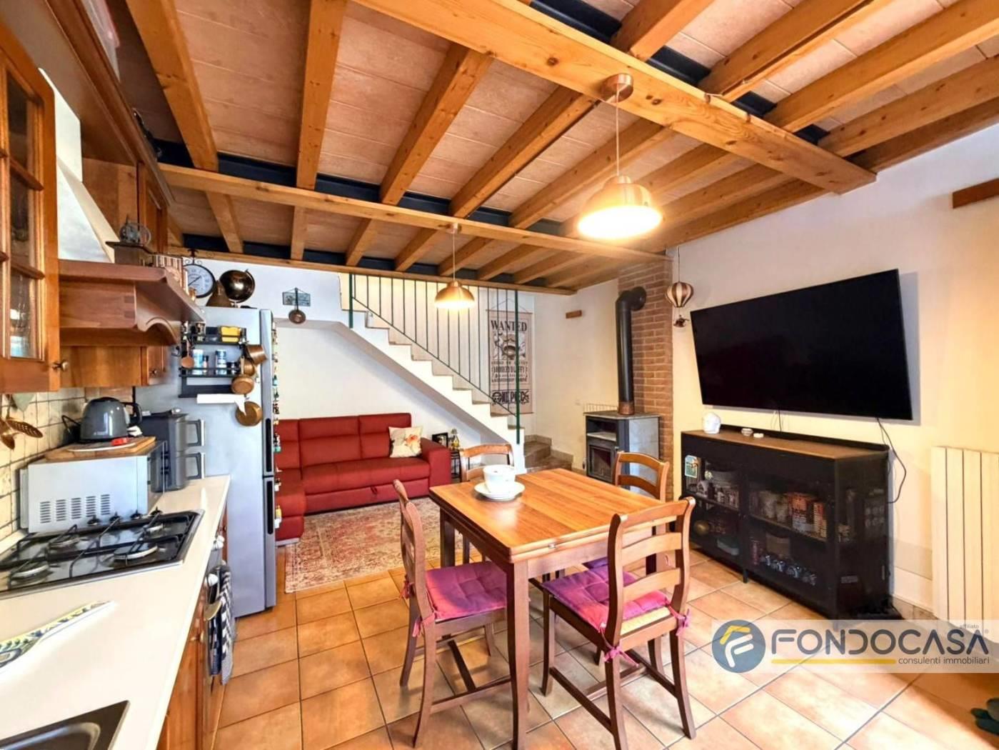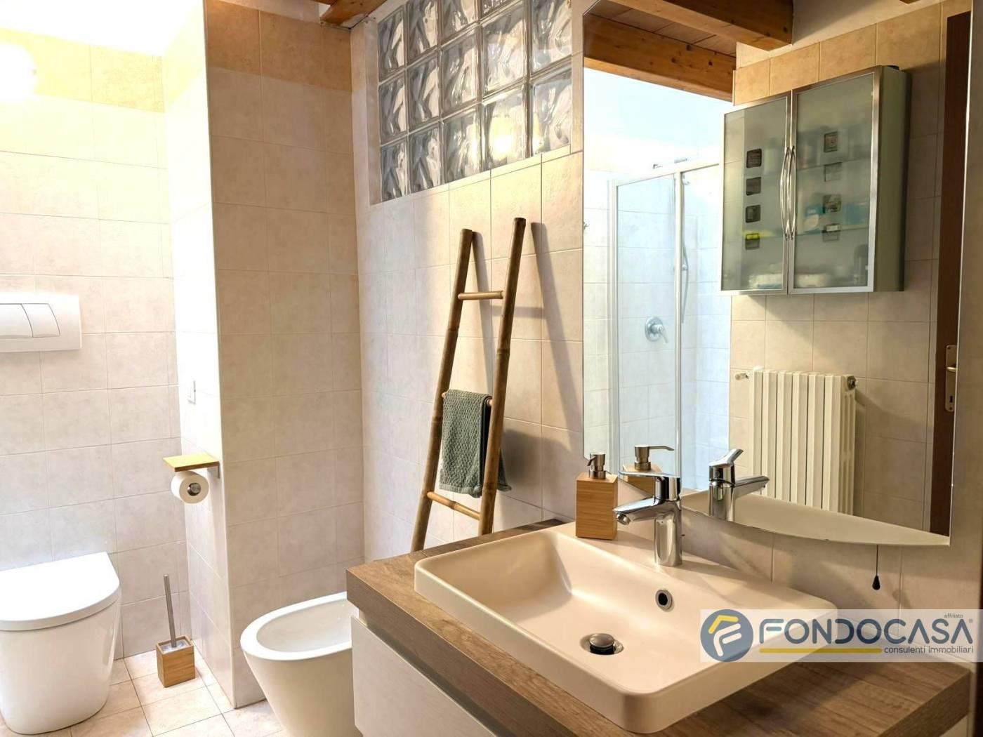 L'appartamento è caratterizzato da travi a vista che rendono l'ambiente caldo ed accogliente e viene venduto parzialmente arredato.