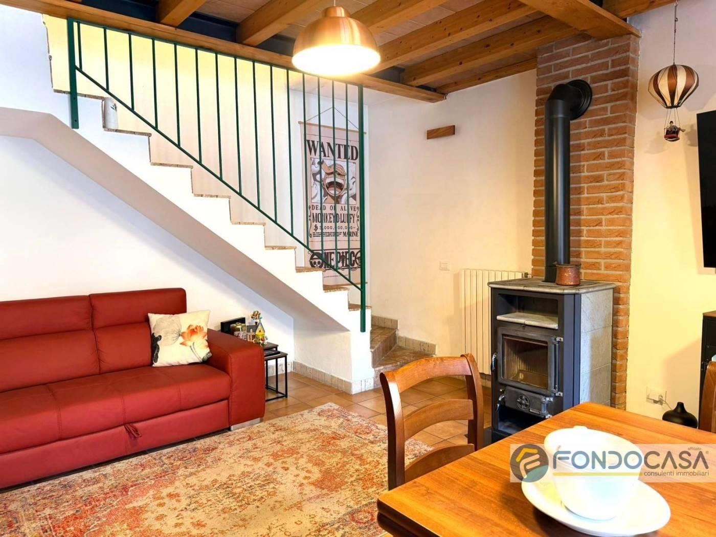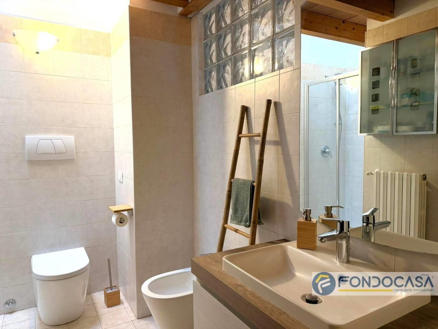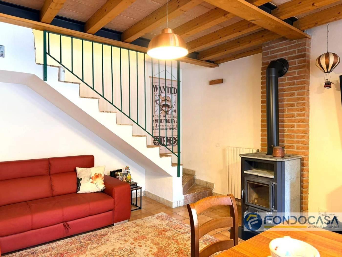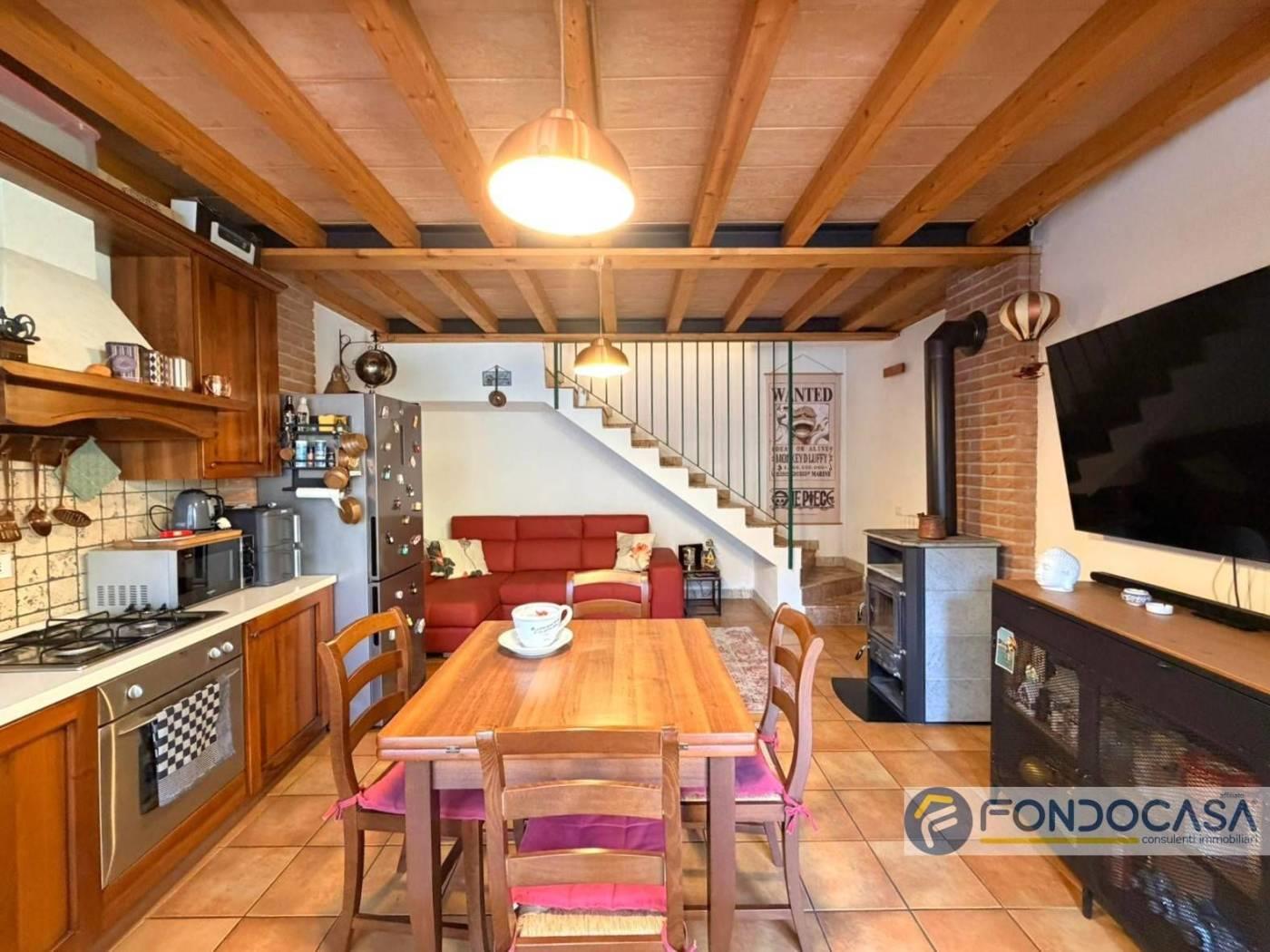 L'appartamento è caratterizzato da travi a vista che rendono l'ambiente caldo ed accogliente e viene venduto parzialmente arredato.