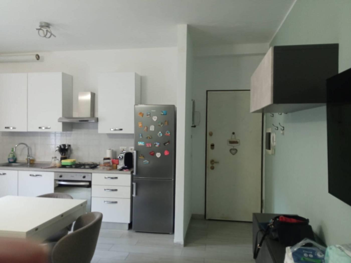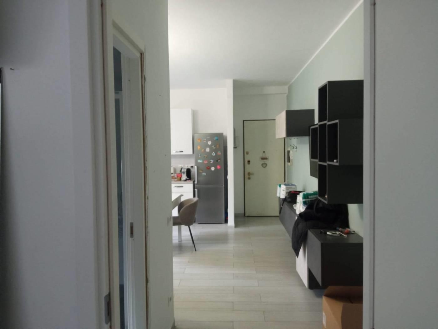 Entrando, il soggiorno con cucina a vista offre un ambiente luminoso e ben organizzato. Un disimpegno conduce alla camera matrimoniale e al bagno moderno con finiture recenti. I 55 mq sono valorizzati da una ristrutturazione completa che rende gli spazi pronti da abitare.