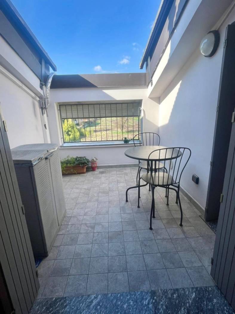 L'ingresso si apre su un'ampia zona giorno con cucina a vista, dalla quale si accede al terrazzo, ideale per godere dei momenti di relax all'aperto.