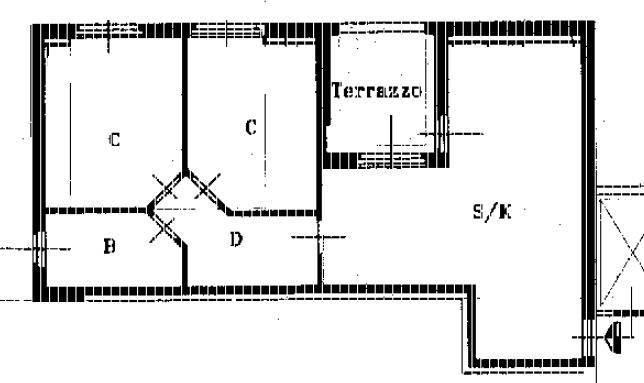 La disposizione degli ambienti è ottimale, con due camere da letto ed un bagno completo di doccia e vasca.