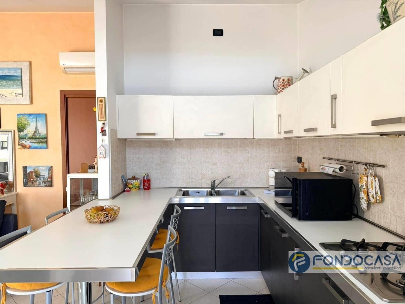 L'appartamento si sviluppa con ingresso su zona giorno con cucina a vista e sfogo su balcone che volge su verde condominiale, disimpegno, camera matrimoniale, cameretta/studio ed infine bagno con doccia.
