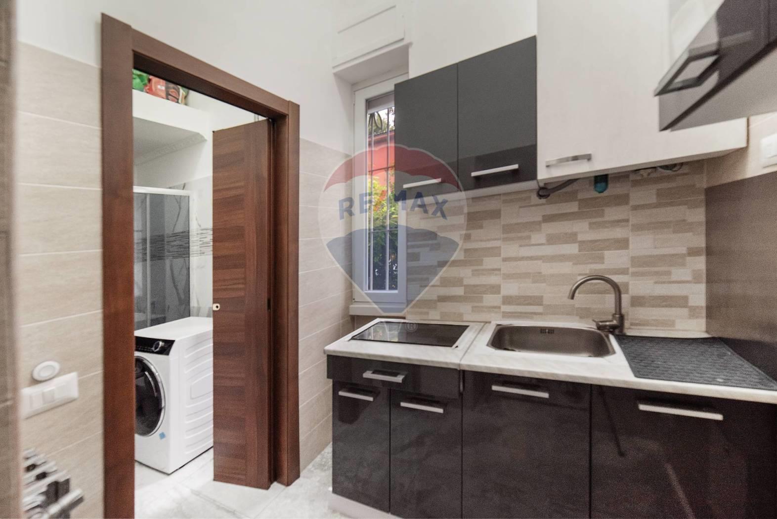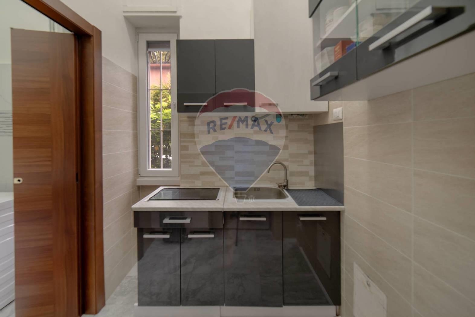 La cucina è provvista di un pratico angolo cottura, separato dal resto dell'immobile attraverso una porta scorrevole.