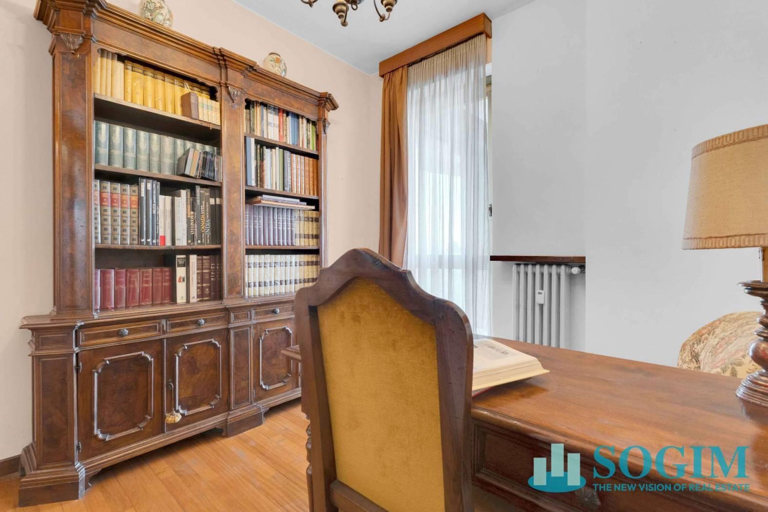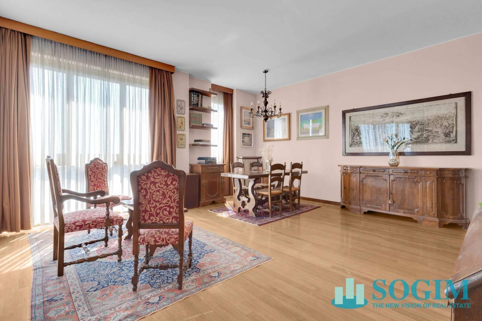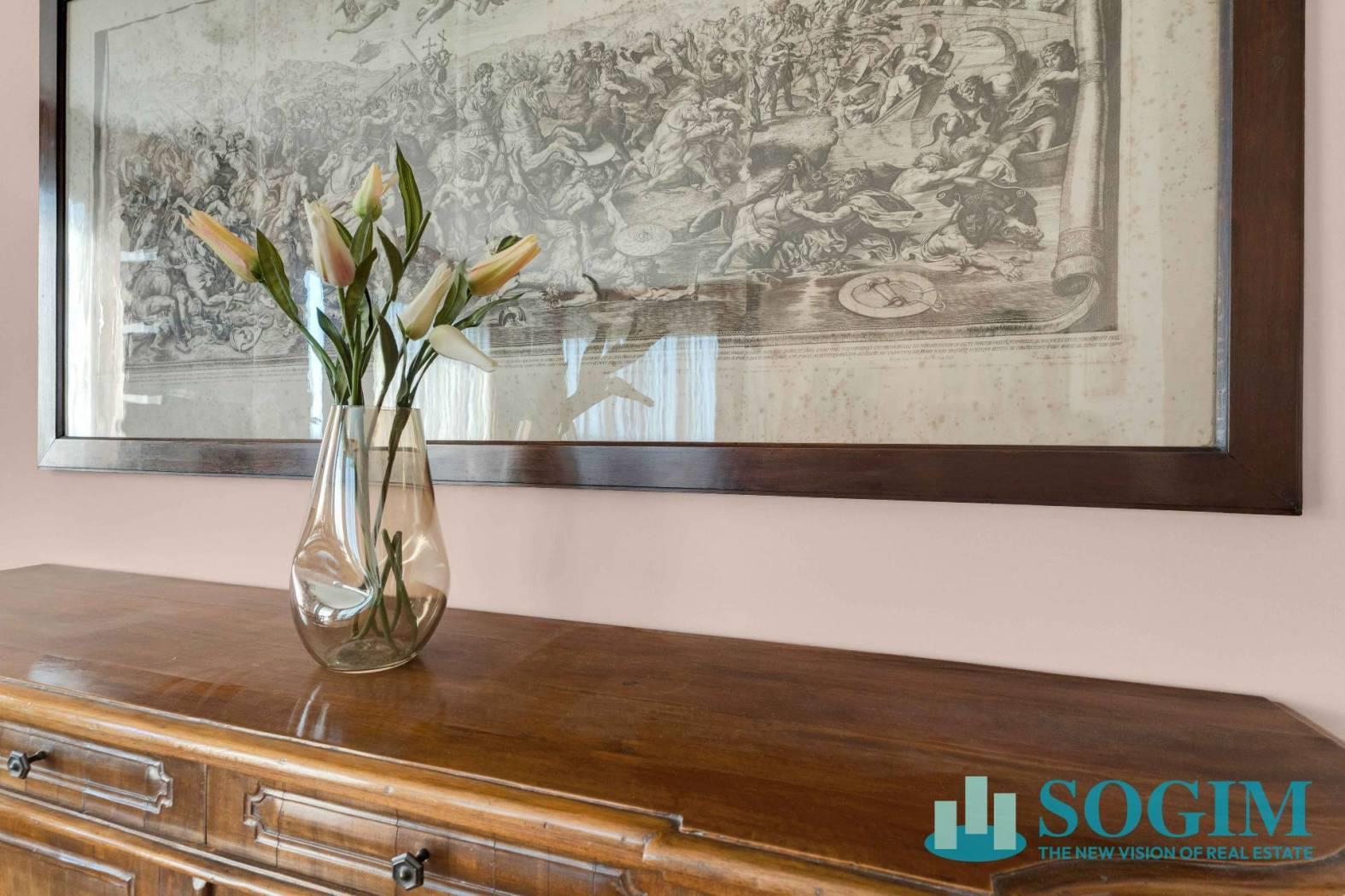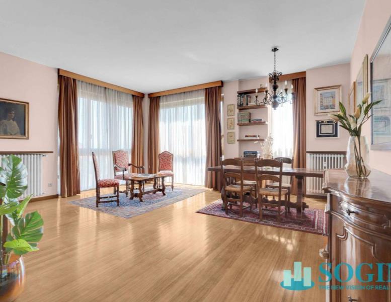 Caratteristiche dell'appartamento: infissi in alluminio - vetro singolo, pavimentazione in parquet nell'ingresso, salone, studio e camera matrimoniale, in ceramica negli altri locali; impianto di riscaldamento centralizzato e di condizionamento con split a parete.