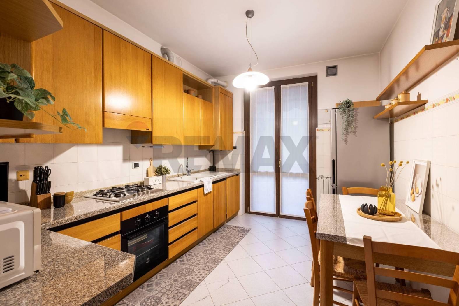 VIMERCATE: A poca distanza dal centro del paese, in una via a fondo chiuso, in una tranquilla e ben servita con supermercati e negozi di prima necessità. In un complesso residenziale con ampio giardino condominiale della metà degli anni '90, posto al secondo piano con ascensore, appartamento di 3 locali (mq. 108) oltre a tre balconi. L'unità abitativa è composto da ingresso su ampia e luminosa zona living con uscita sul balcone, cucina abitabile separata con accesso al secondo balcone, disimpegno zona notte con due camere matrimoniali, primo bagno completo con doccia e secondo bagno di servizio/lavanderia.