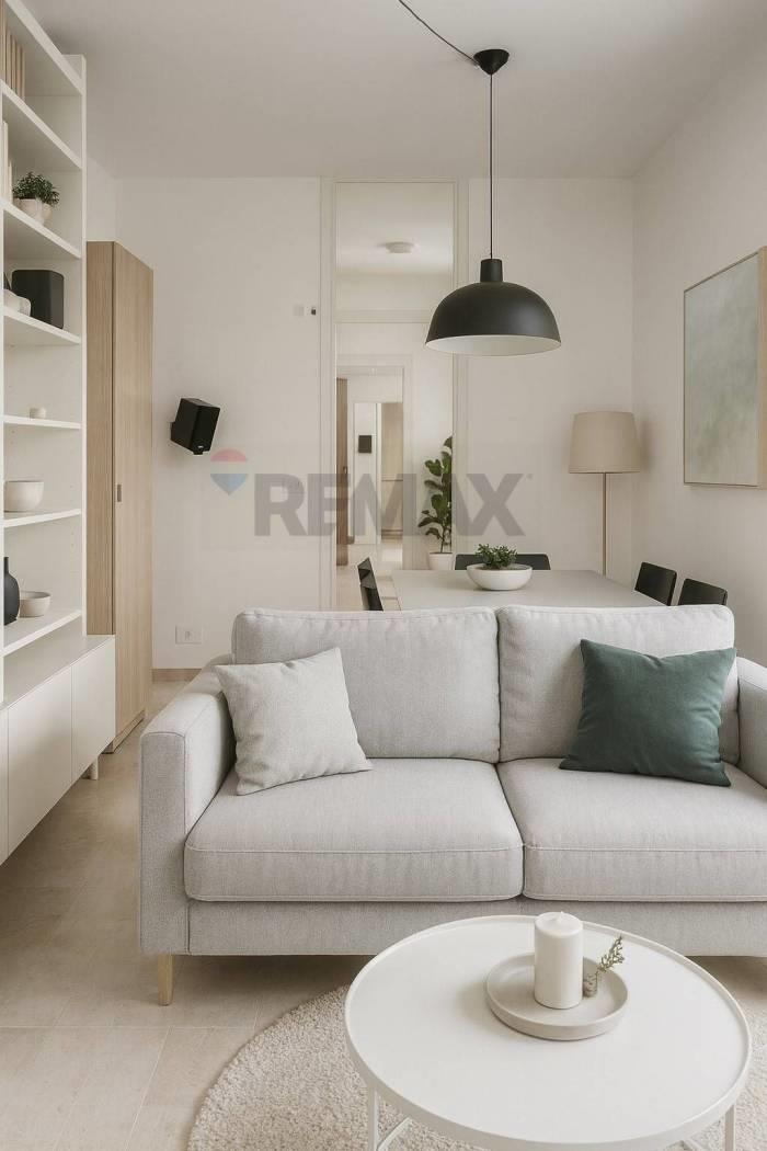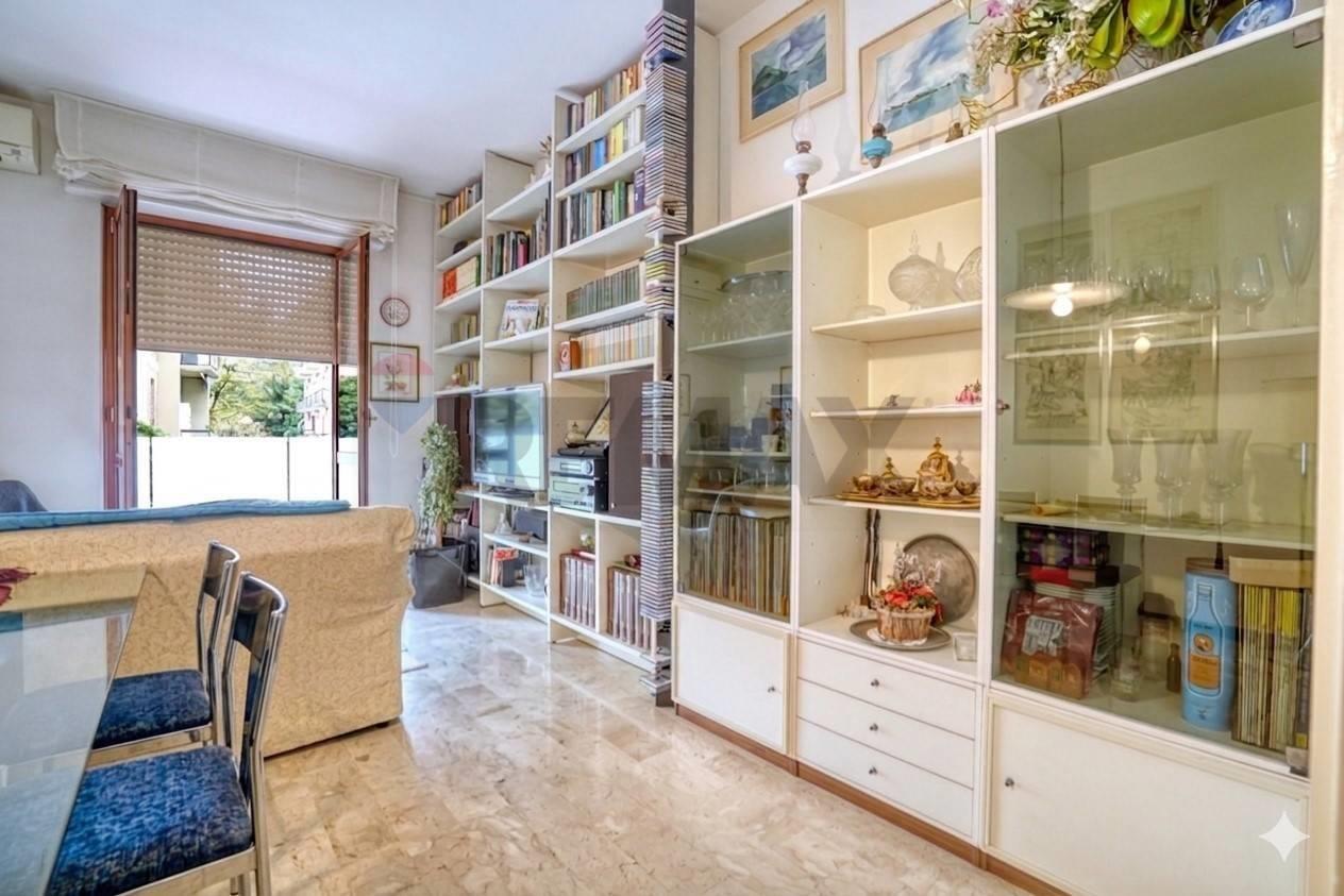 L'appartamento è composto da: ingresso, disimpegno, cucina abitabile con porta finestra e uscita sul balcone, soggiorno anch'esso con porta finestra ed acceso ad un secondo balcone, due camere matrimoniali, di cui una è stata isolata acusticamente con materiali fonoassorbenti, bagno completamente ristrutturato nel 2015 (sanitari, rivestimenti, impianti).