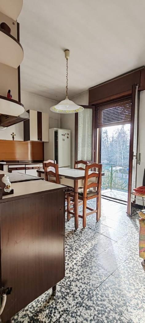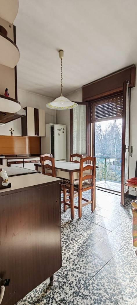 L'appartamento si compone di un ingresso che conduce a un ampio disimpegno, due camere matrimoniali, una cucina abitabile e un ampio soggiorno.