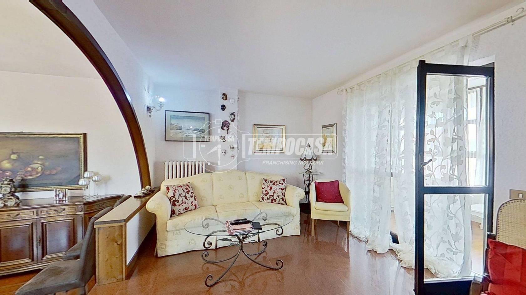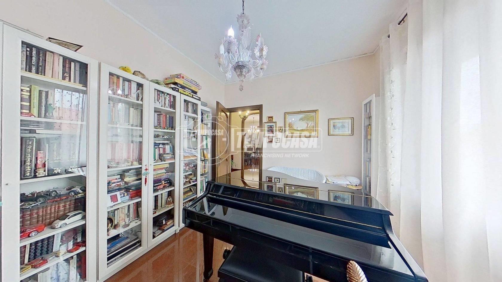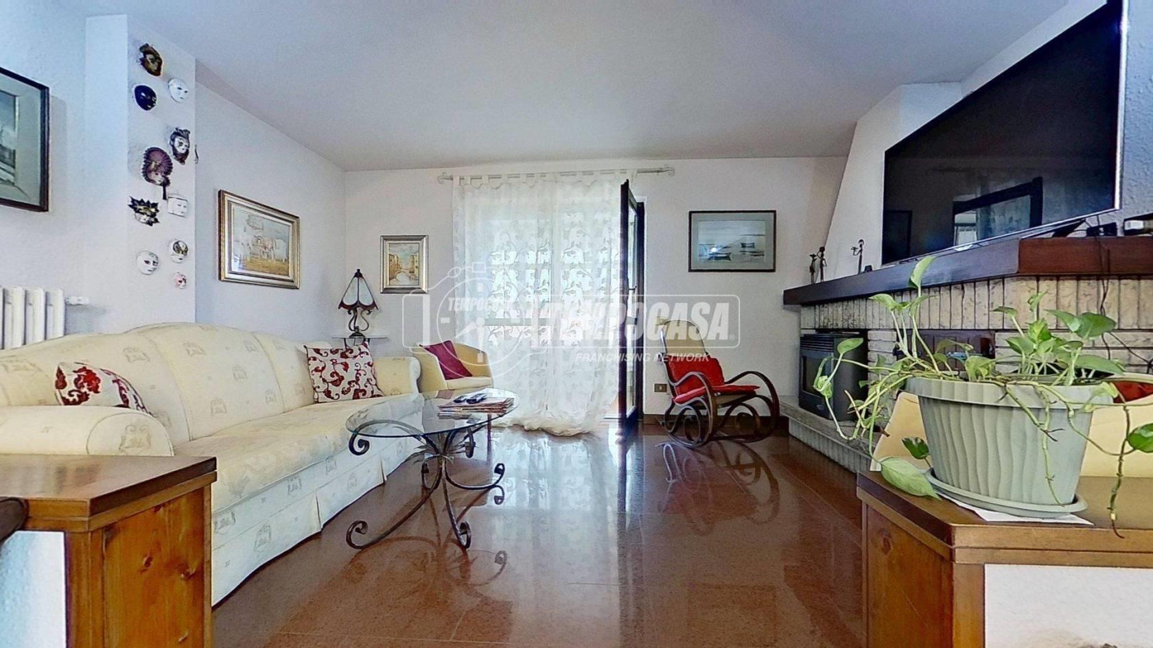 Rif: 01076 - In Via Monte Bianco proponiamo in vendita esclusiva un raffinato appartamento in villa. L’area è strategica: a pochi passi da tangenziali, autostrade e dalla metropolitana di Cologno Nord, circondata da negozi, ristoranti e servizi di ogni tipo. La via è chiusa e poco trafficata, garanzia di riservatezza e silenzio pur restando vicina a ogni comodità. Salendo al primo e ultimo piano della villa, si viene accolti da un grazioso balconcino che conduce all’ingresso. Un corridoio ampio e ordinato accompagna alla zona giorno: sulla destra il luminoso soggiorno, impreziosito da un camino a pellet e dall’accesso al balcone verandato, perfetto per vivere gli spazi in ogni stagione. Alla sinistra, un comodo studio ideale per lavorare da casa o dedicarsi ai propri interessi, seguito da un pratico ripostiglio. Proseguendo, si apre la spaziosa cucina abitabile, con un secondo balcone che regala luce naturale e un ulteriore ripostiglio dotato di attacchi per la lavatrice. La zona notte è ben separata e accogliente: due camere matrimoniali, una cameretta e due bagni, entrambi con box doccia, garantiscono comfort e funzionalità. La cameretta, una camera matrimoniale e uno dei bagni godono dell’accesso diretto al terzo balcone, creando una piacevole continuità tra interno ed esterno. La camera matrimoniale più a nord è stata oggetto di intervento di isolamento con cappotto termico interno. Gli infissi, sostituiti nel 2021, sono in PVC con doppi vetri e inferriate in ferro massiccio. La caldaia a condensazione, installata nel 2023, e l’impianto di aria condizionata con funzione caldo/freddo assicurano efficienza e comfort in ogni stagione. Uno dei bagni è stato completamente ristrutturato nel 2022, donando un tocco moderno e raffinato all’ambiente. Completa la proprietà un giardino, perfetto per momenti di relax o convivialità, e un ampio box di 44 mq, ideale per ospitare più veicoli o per chi desidera uno spazio aggiuntivo per hobby o deposito.