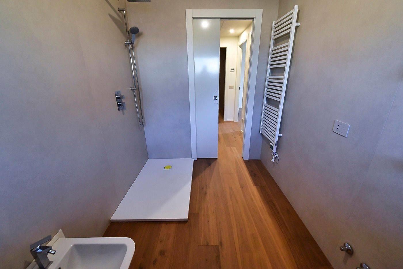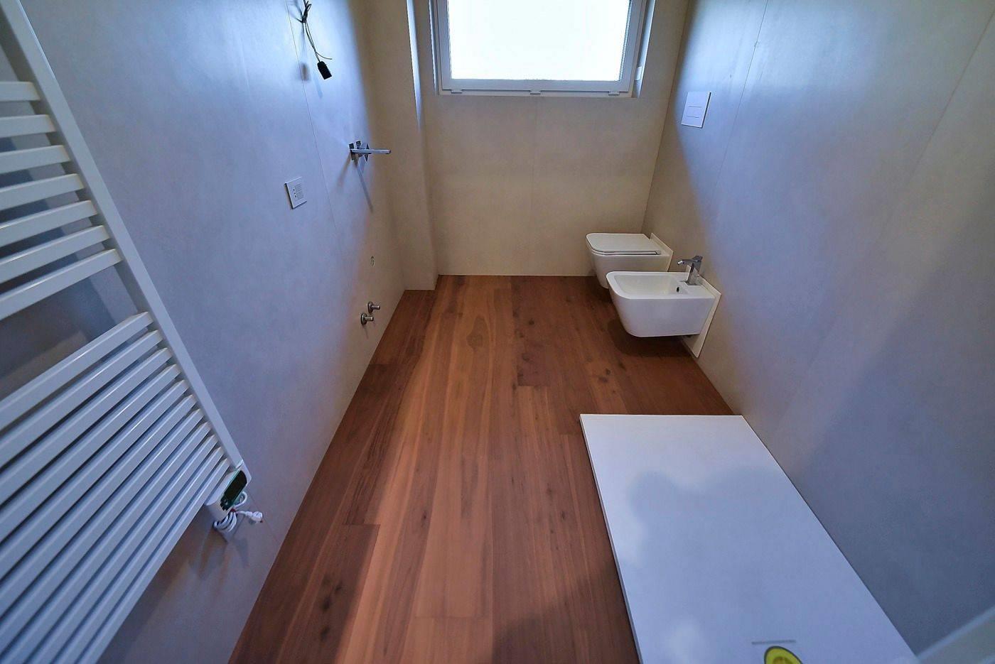 Le finiture interne "EXTRA-CAPITOLATO" sono degne di nota: pavimentazione in parquet a listoni essenza "Mardegan noce americano" rivestimento bagno in gres formato 60x120 spessore 6 millimetri, rubinetteria "Frattini/Bossini" sanitari "Ceramica Globo", impianto elettrico con sistema "Domotico" con gestione tramite app per comandare l'illuminazione interna, le tapparelle motorizzate e impianto di antifurto anch'esso completo e funzionante.