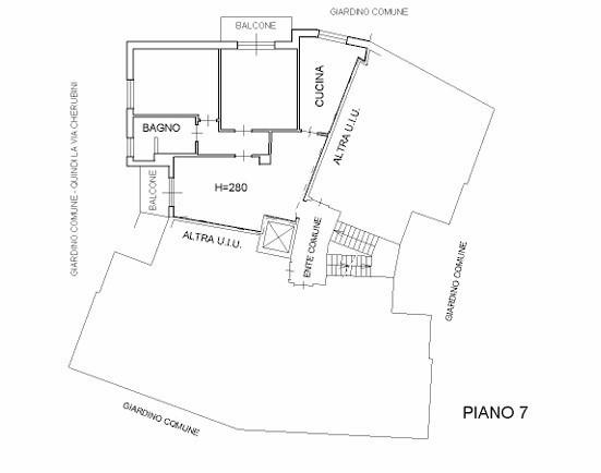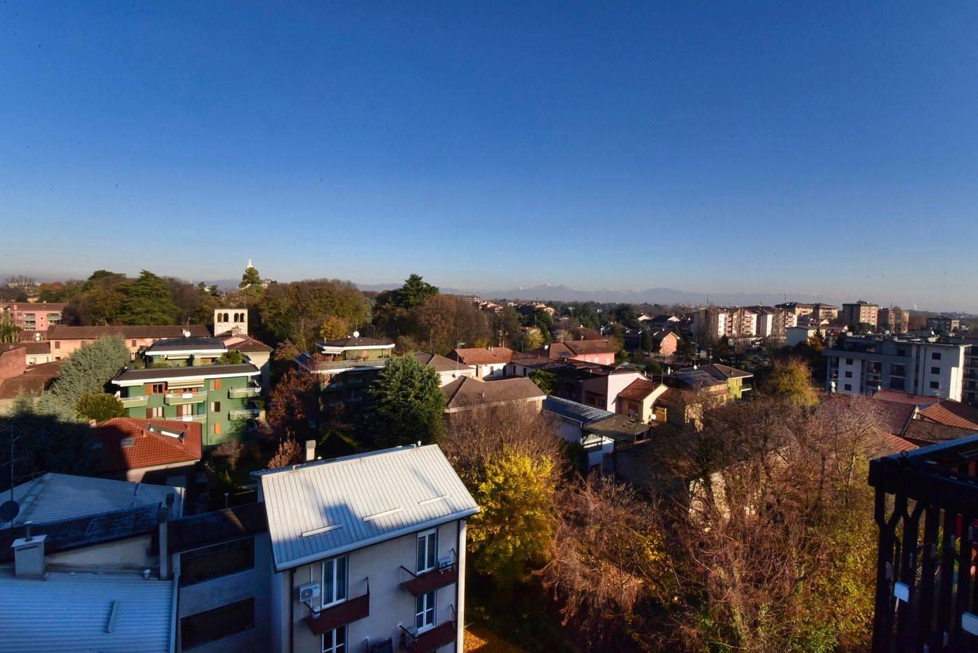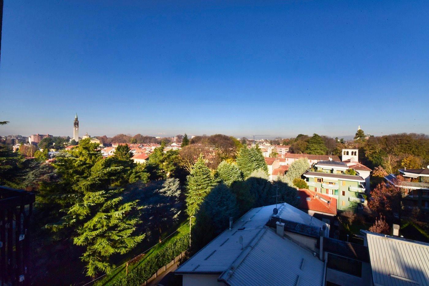 Tramite l'ascensore si accede all'utimo piano ove troviamo l'abitazione così disposta: ingresso con affaccio diretto sull'ampio soggiorno munito di comodo balcone lato sud con vista panoramica sulla città di Milano; cucina abitabile anch'essa con meraviglioso affaccio sulla catena montuosa lato ovest, n. 2 camere entrambe matrimoniali e bagno finestrato.
