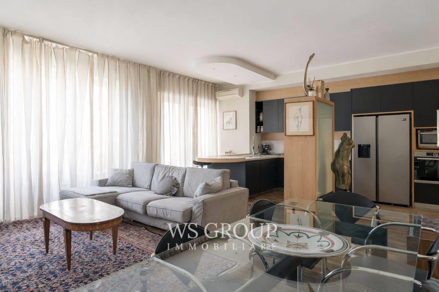 L’appartamento di 160mq, posto al piano nobile, è stato oggetto di recente ristrutturazione ed è connotato da ampi spazi, soffitti a 3mt di altezza ed ampie vetrate che permettono di illuminare gli ambienti con un’affasciante luce diffusa. L’ ingresso è spazioso e separato dalla zona giorno, il salotto di ampie dimensioni è ben diviso in zona pranzo e zona living, mentre la cucina è all’americana; dal disimpegno si acceda ad un primo servizio con lavanderia e secondo bagno con vasca idromassaggio e doccia, entrambi finestrati, due camere matrimoniali di generose dimensioni e due camere singole. Cantina di pertinenza e box singolo di pertinenza in via Manzoni nr. 7 ad Euro 65.000 non scorporabile dall'appartamento. Possibilità box doppio in larghezza in via San Gottardo 60 ad Euro 65.000.