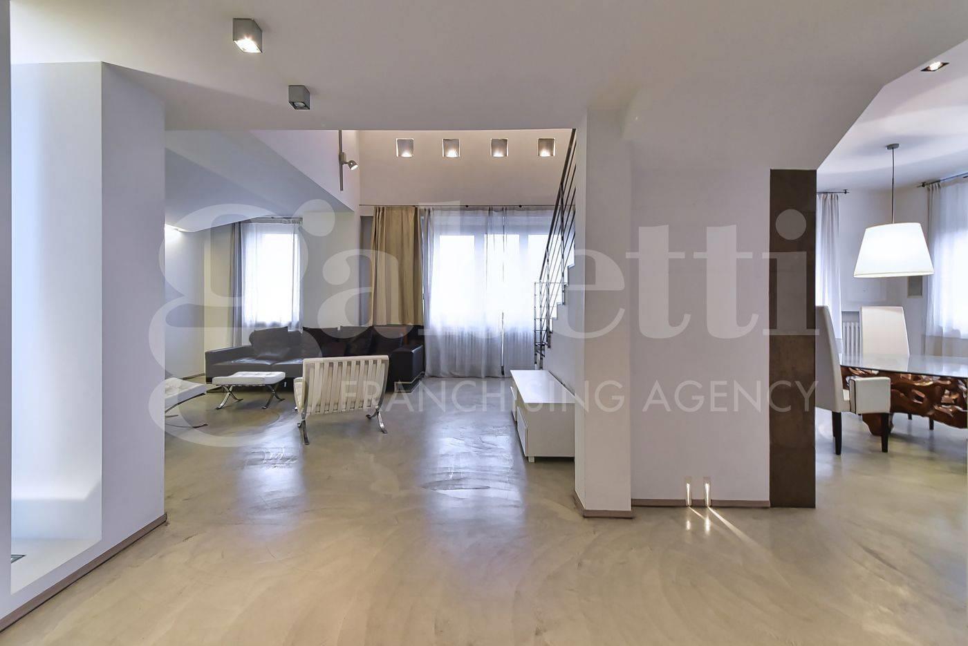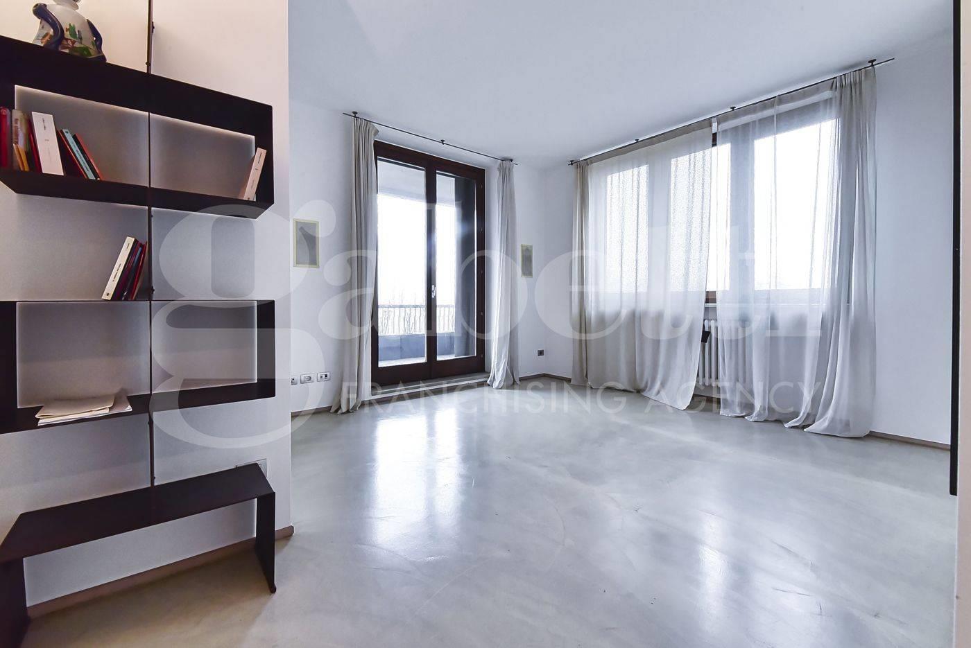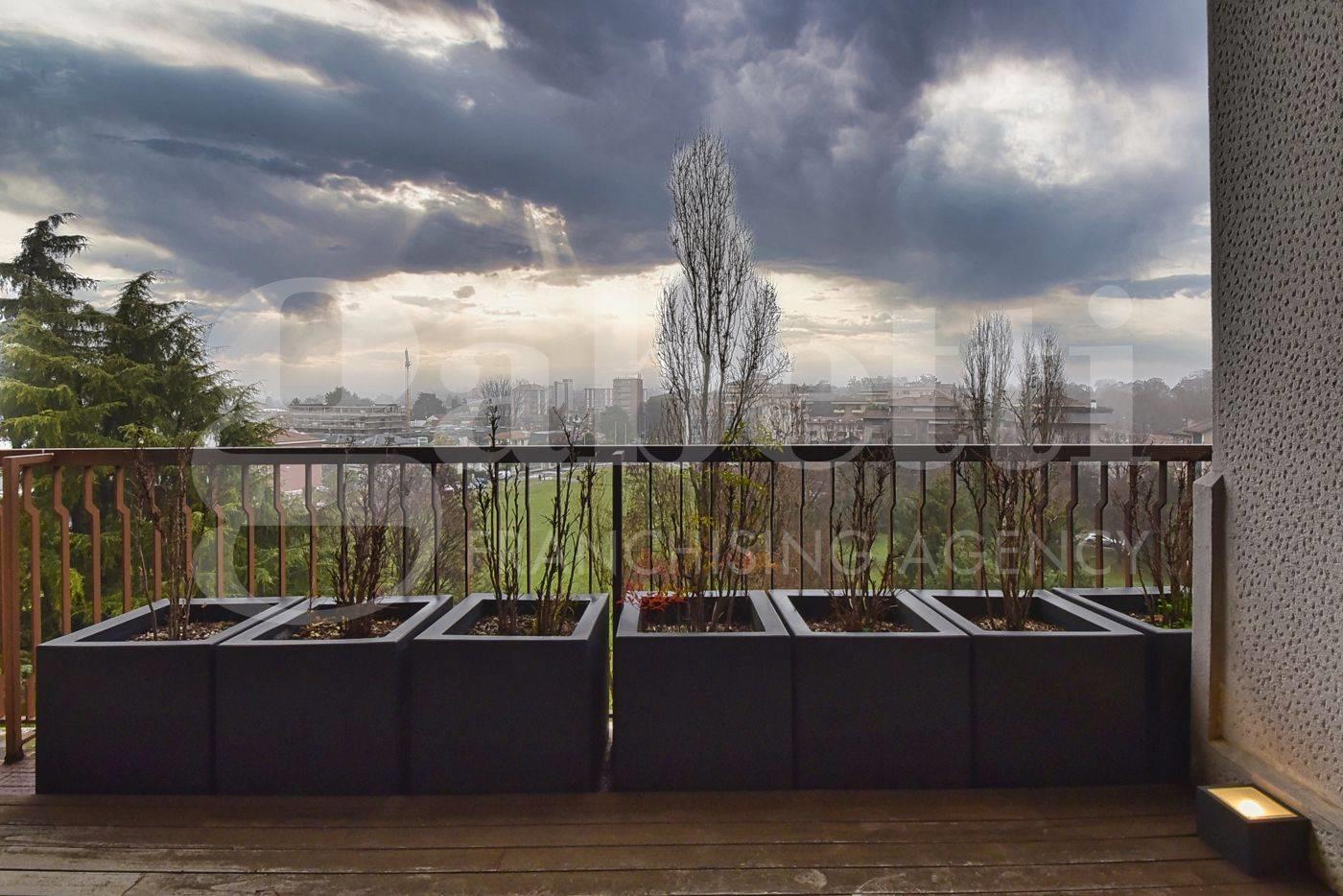 VEDANO AL LAMBRO/PARCO Residenza Riva Verde – ATTICO LUMINOSO di ampia metratura (circa 385 mq) con QUADRUPLA ESPOSIZIONE, così composto: ingresso sul SALONE DOPPIO di circa 55 mq (parzialmente valorizzato dalla scenografica doppia volumetria) con accesso ad un panoramico BALCONE VIVIBILE, guardaroba, ampia SALA DA PRANZO, CUCINA ABITABILE con balcone e passavivande, due ripostigli, BAGNO di servizio; disimpegno di accesso alla zona notte composta dalla SUITE PADRONALE con cabina armadio, balcone e BAGNO PRIVATO e da ulteriori 2 CAMERE (di cui una con balcone) e bagno. La proprietà è arricchita dalla sovrastante mansarda composta da un soppalco in aggetto sul salone, attraverso il quale si accede allo STUDIOLO con ripostiglio e pareti attrezzate ad armadiatura e ad una suggestiva SALA CINEMA. Completano il piano un secondo locale abitabile, una sala da bagno con zona wellness (bagno turco) ed un’ampia lavanderia. Gli ambienti, pensati per coniugare rappresentanza e funzionalità, offrono spazi generosi ed una chiara separazione tra zona giorno, notte e area relax, rendendo questa dimora particolarmente adatta a chi desidera una casa importante, da vivere e da esibire. Eccellenti le dotazioni impiantistiche arricchite dalla domotica su impianto di illuminazione e serrande/tapparelle. Due vani di cantina in dotazione. Possibilità di acquisto fino a 2 BOX nello stabile (prezzo, 35.000 e 50.000 euro, da aggiungere al valore dell’abitazione).