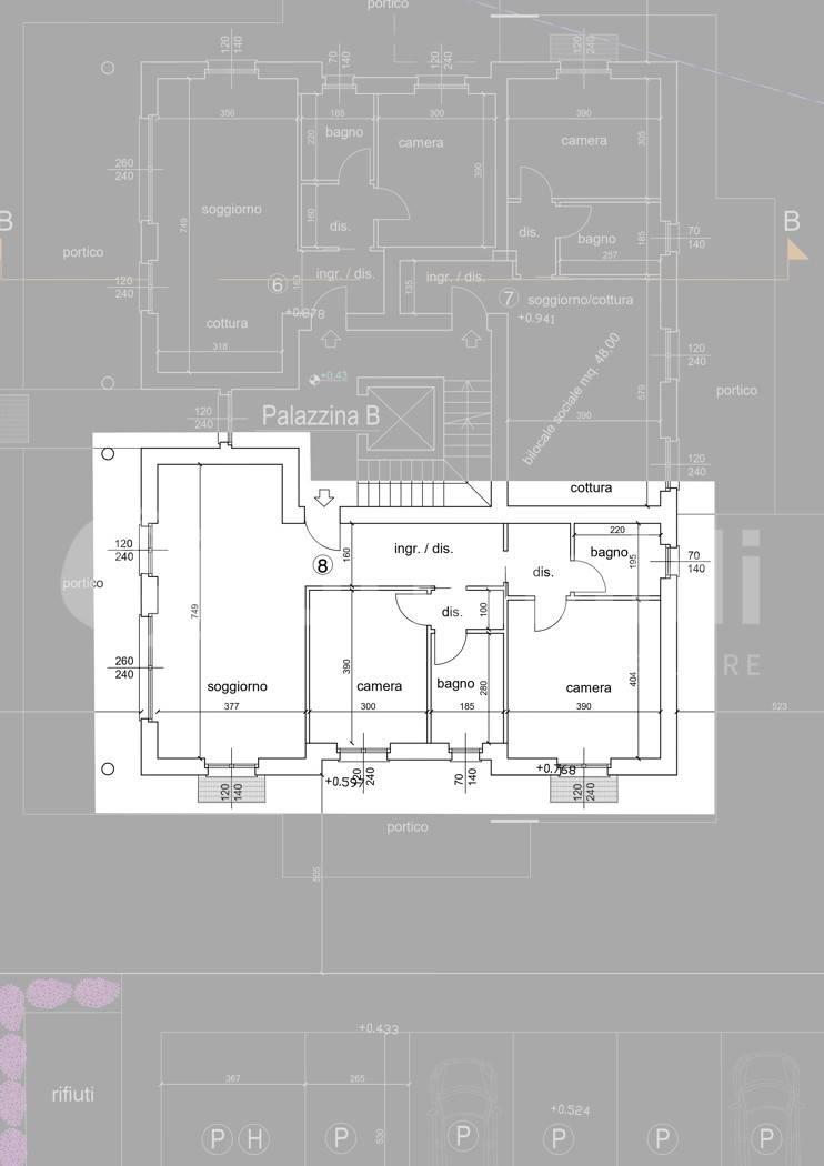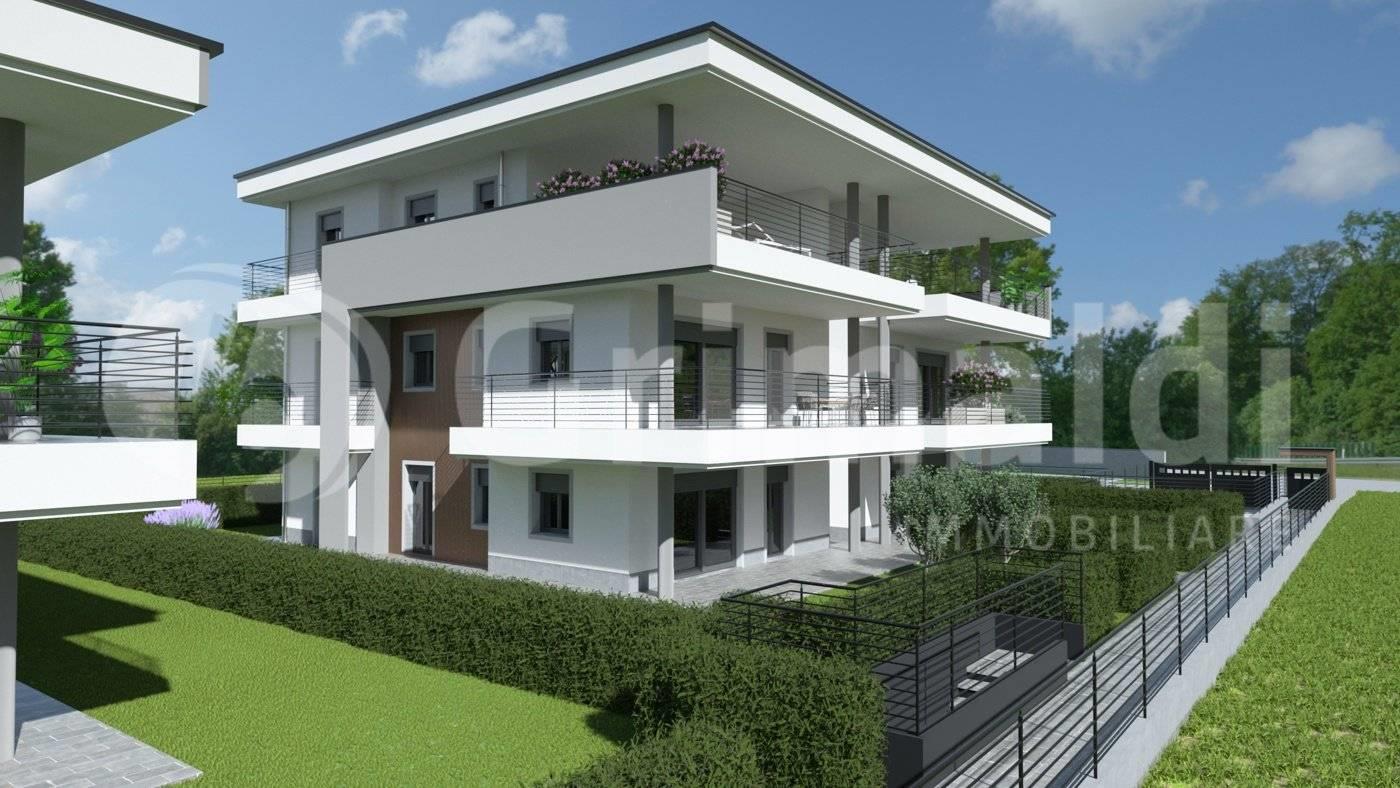 Proponiamo in cantiere di prossima realizzazione un appartamento di tre locali al piano terra con giardino e ampio portico di mq 28 di mq 145,73 commerciali.