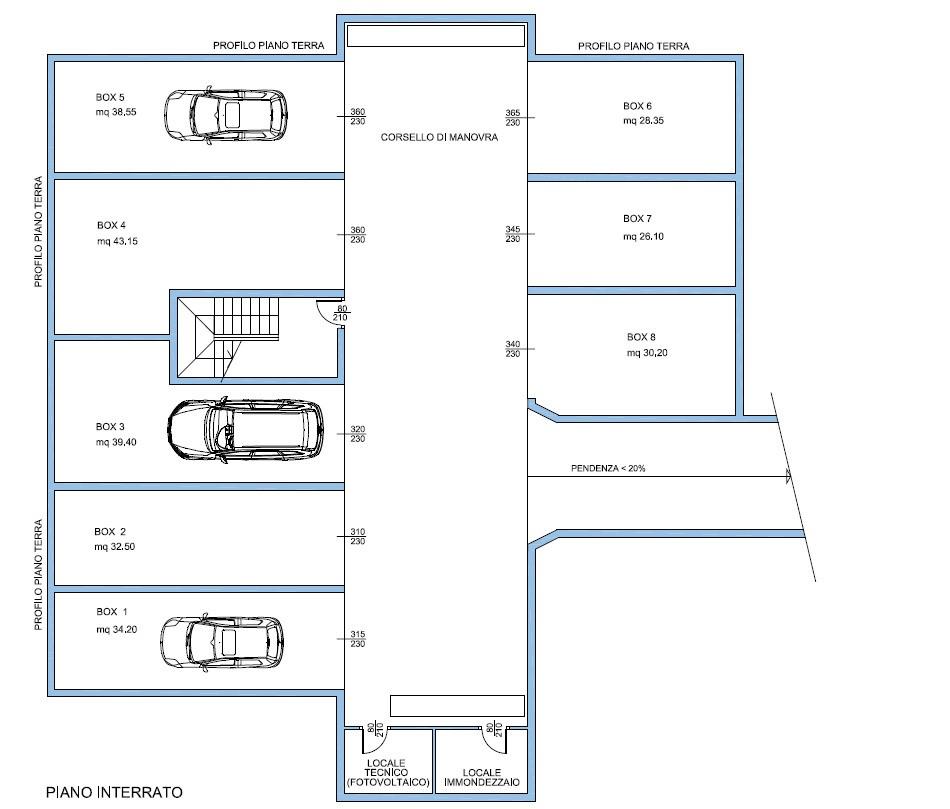 A completare la residenza, è prevista la possibilità di acquistare box autorimessa singoli di ampia metratura oppure doppi, disponibili in diverse dimensioni.