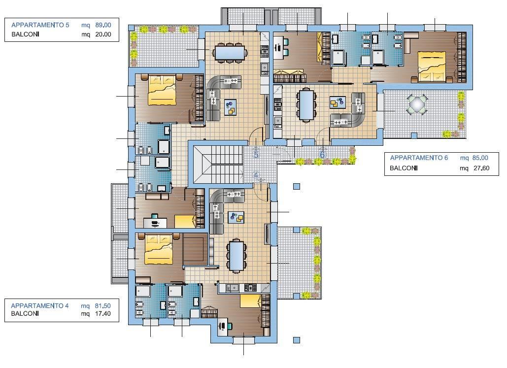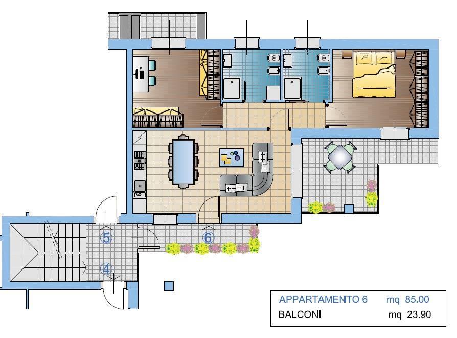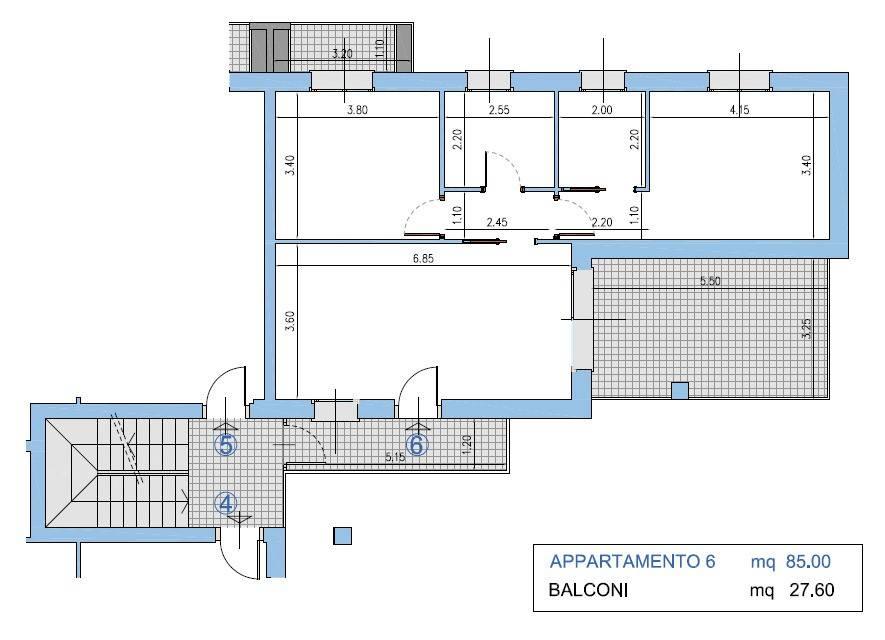Trilocale con terrazzo e doppi balconi – 85 mq interni + 24 mq di sfoghi esterni