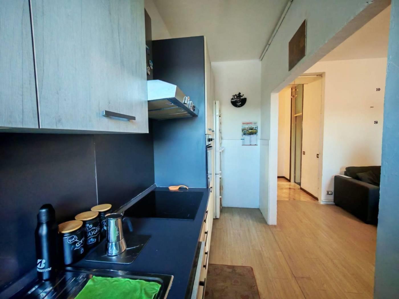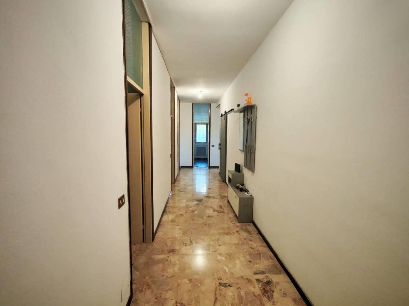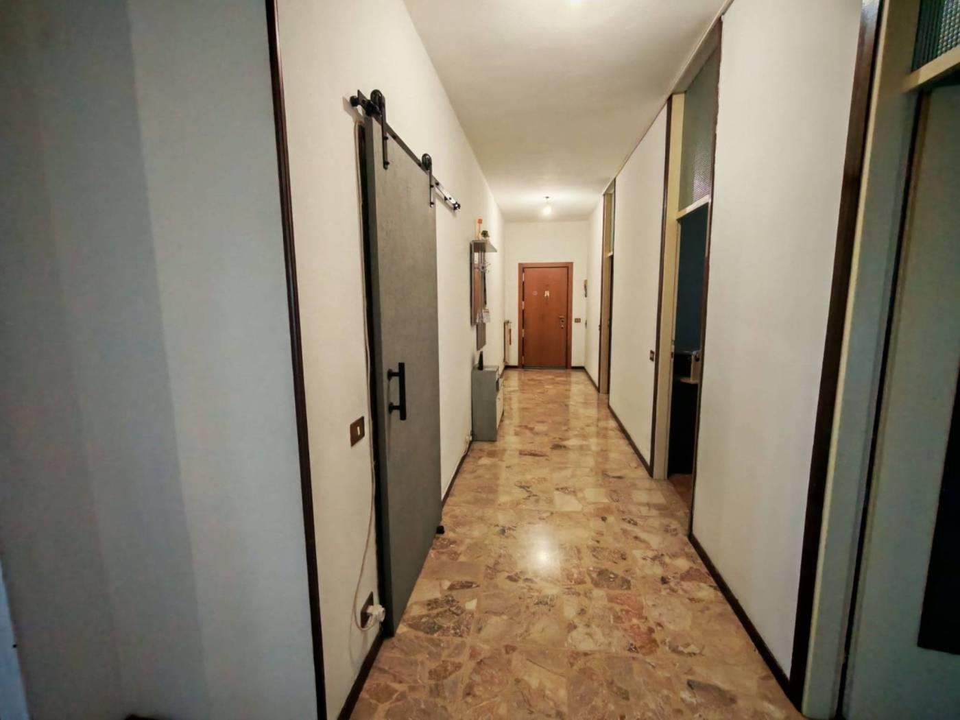 L’appartamento si apre con un ampio ingresso che conduce a un soggiorno grande e luminoso con cucina a vista, cuore della casa e perfetto per vivere la zona giorno in modo moderno e conviviale.