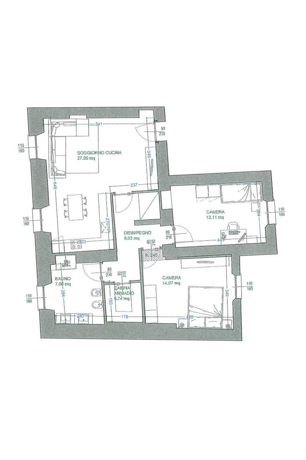 L'appartamento dispone di due camere da letto, una cabina armadio e un ripostiglio, garantendo spazio e funzionalità. Il servizio è finestrato, aggiungendo luminosità agli spazi. Il riscaldamento a pavimento e la predisposizione per l'aria condizionata assicurano comfort in ogni stagione. Completa la proprietà una comoda cantina. Possibilità di box a parte ad e 25.000,00