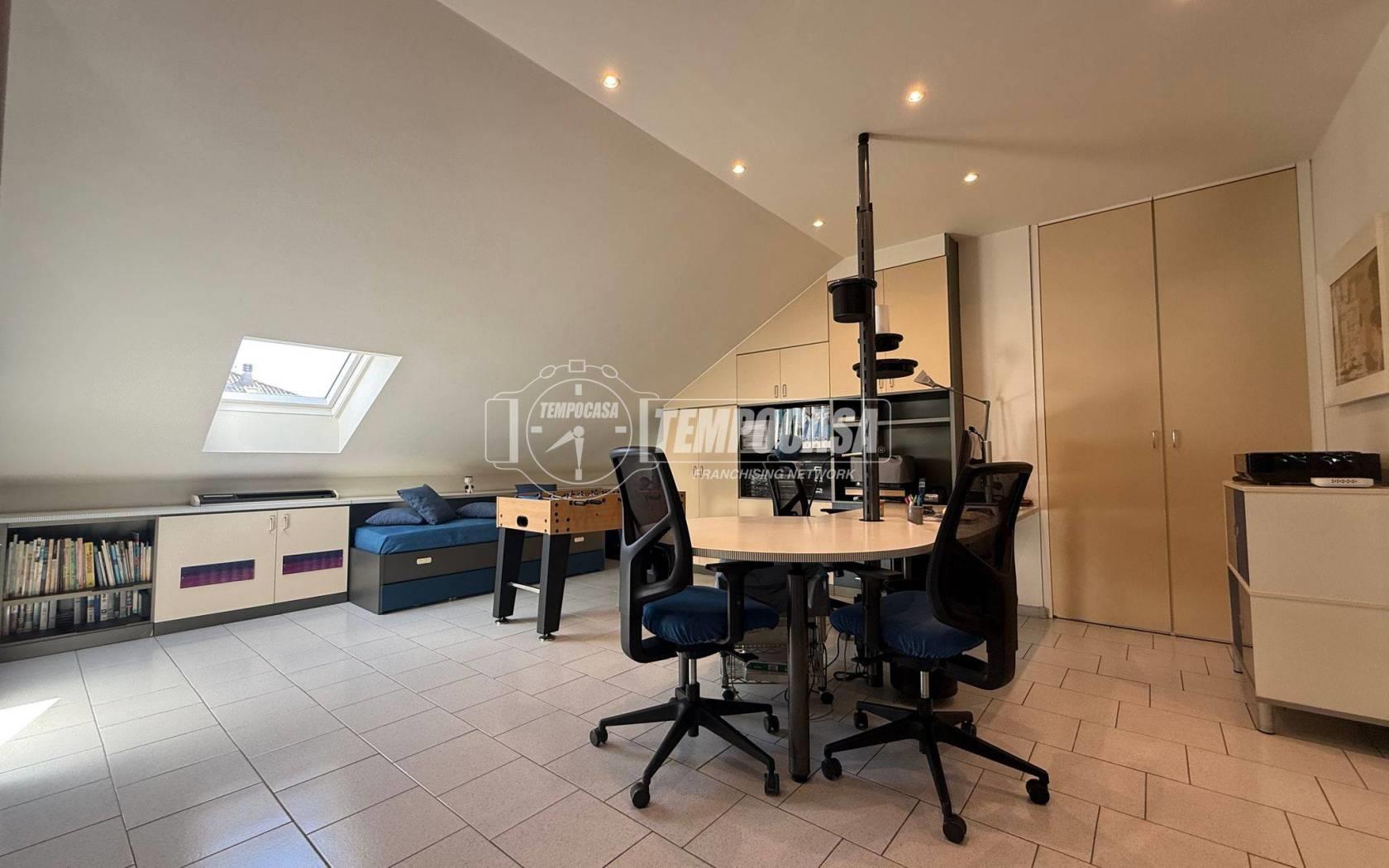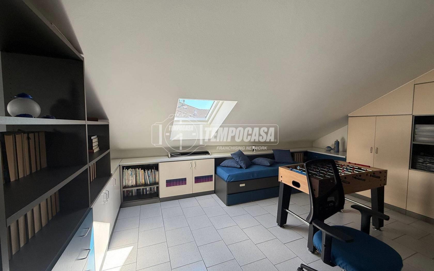Salendo al livello superiore, si accede a una splendida e ampia mansarda, un ambiente incredibilmente versatile che si presta a molteplici interpretazioni. Attualmente adibita a zona relax, studio e area gioco, questa mansarda rappresenta un valore aggiunto per la proprietà, offrendo uno spazio aggiuntivo per hobby, lavoro da casa o come rifugio privato per i più giovani. La sua configurazione aperta e luminosa la rende adattabile a diverse esigenze familiari, garantendo flessibilità e comfort.