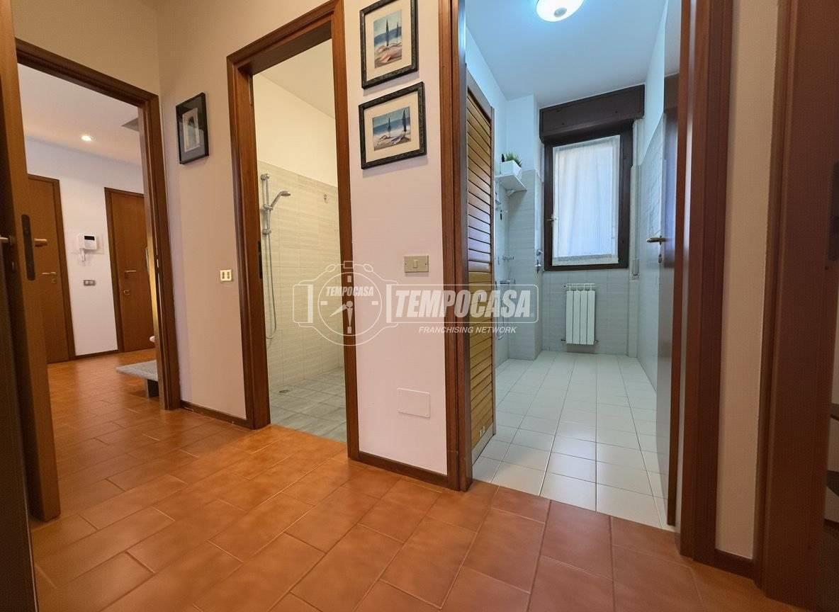 L'ingresso si apre su un'ampia zona giorno, un ambiente luminoso e accogliente, pensato per momenti di convivialità e relax. Da qui si accede direttamente a un significativo spazio esterno terrazzato, un vero e proprio prolungamento dell'area living, perfetto per pranzi all'aperto o per godere di momenti di tranquillità. Questo ampio balcone è comodamente accessibile anche da una delle camere, offrendo praticità e una costante sensazione di apertura. La cucina, spaziosa e abitabile, è dotata di un proprio balconcino di servizio, funzionale per le necessità quotidiane. Un disimpegno ben studiato garantisce una chiara separazione tra la zona giorno e la zona notte, dove troviamo camere da letto di dimensioni generose, capaci di ospitare arredi completi con facilità. Completano il piano due servizi igienici, entrambi finestrati, che assicurano luce naturale e un'ottima ventilazione.