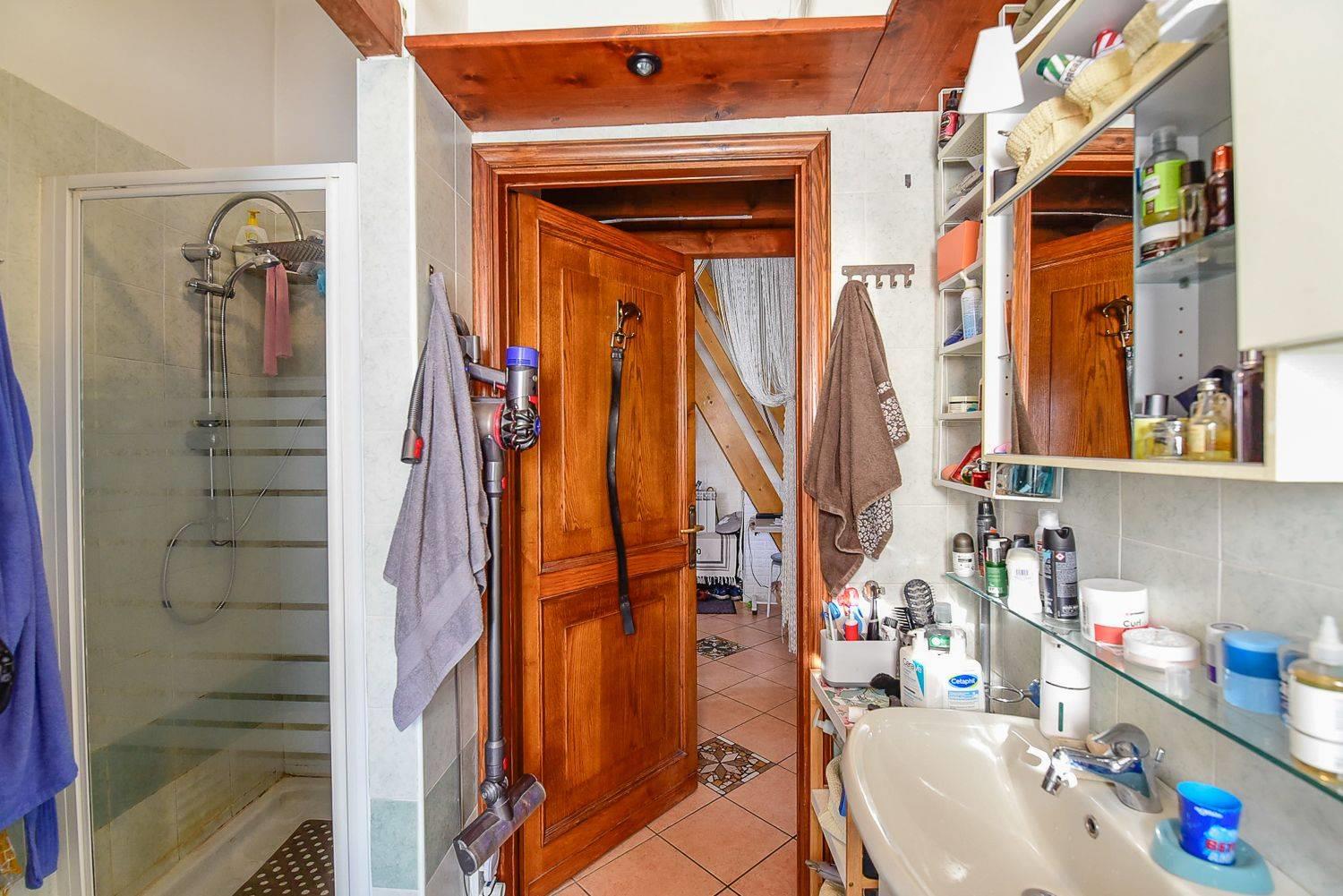 Continuando su questo livello troviamo la prima camera matrimoniale ed il bagno che gode della presenza di un comodo box doccia.