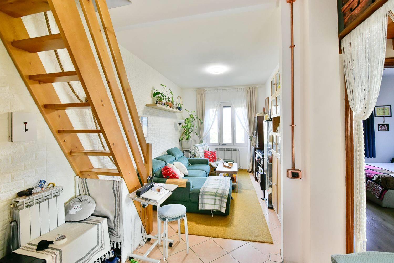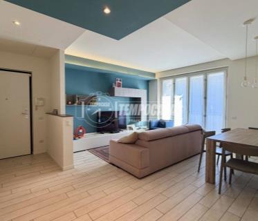 Funge da benvenuto un ampia zona giorno open-space con accesso diretto al balcone di proprietà.