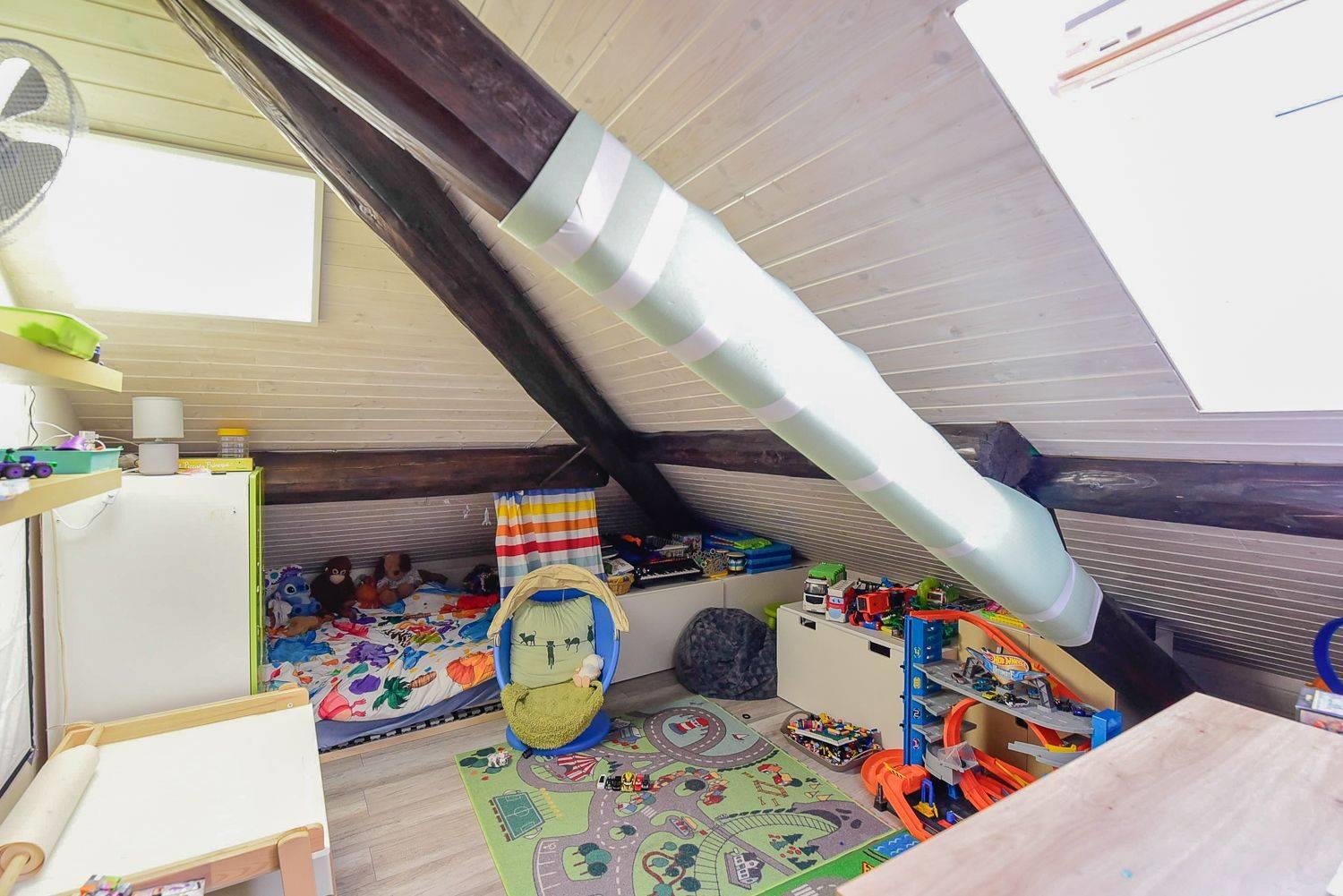 Spostandoci al primo piano è presente la restante parte di zona notte mansardata con due ulteriori camere da letto.