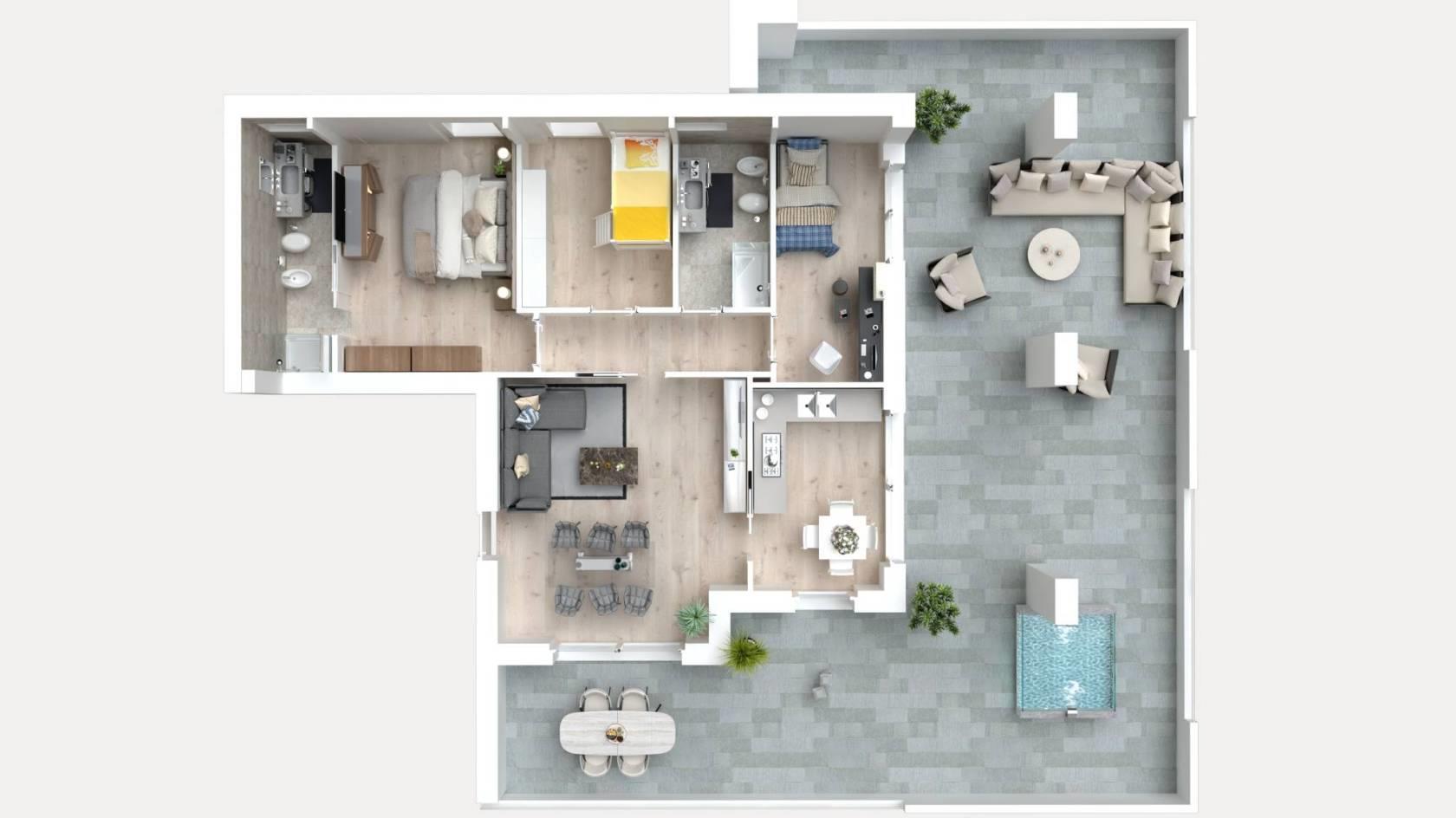 SISMA BONUS ACQUISTI EURO 48.000 - RESIDENZA BERGENIA - Consegna settembre 2026- Vi proponiamo una esclusiva soluzione al piano 3° Attico di 4 locali composto da ingresso, soggiorno con cucina abitabile che affaccia su uno splendido panoramico terrazzo di mq. 100 con tripla esposizione, possibilità di realizzare Vetrate Panoramiche per un ampio ambiente confortevole con affaccio a sud, sfruttabile anche nel periodo invernale La zona notte si compone di 3 camere con due servizi uno dei quali direttamente collegato alla camera matrimoniale. Possibilità Ampio Box singolo DI MQ. 27 e cantina . Possibilità 2 posti auto privati e rimessa moto - magazzino. Consegna nel settembre 2026.