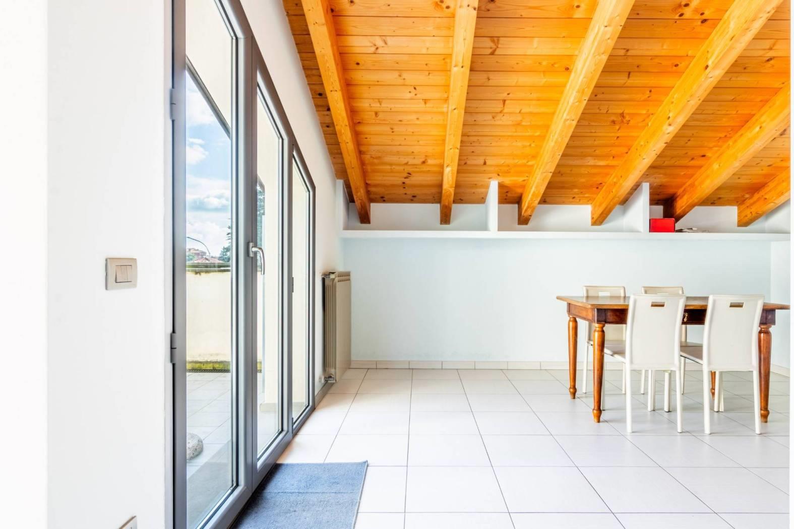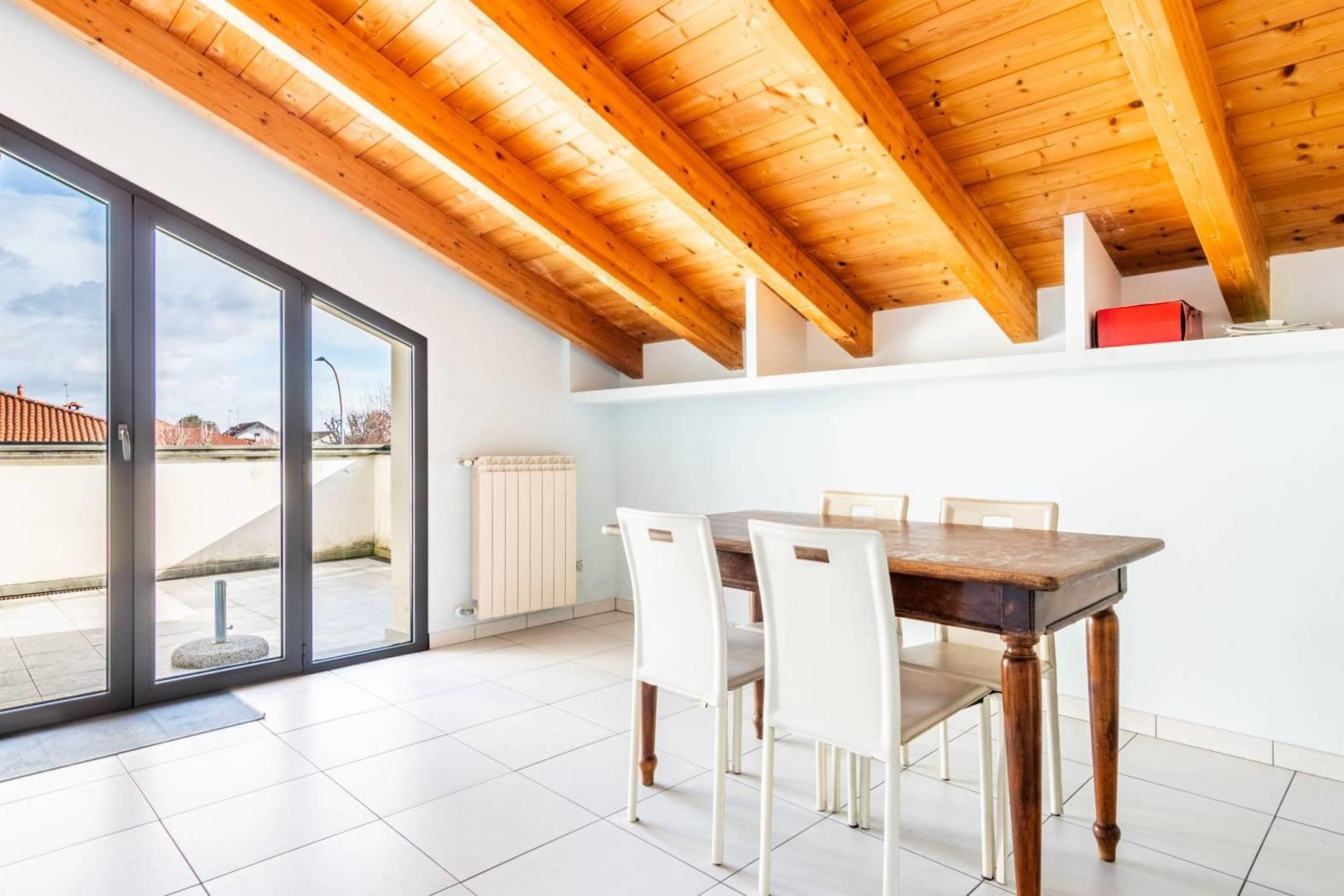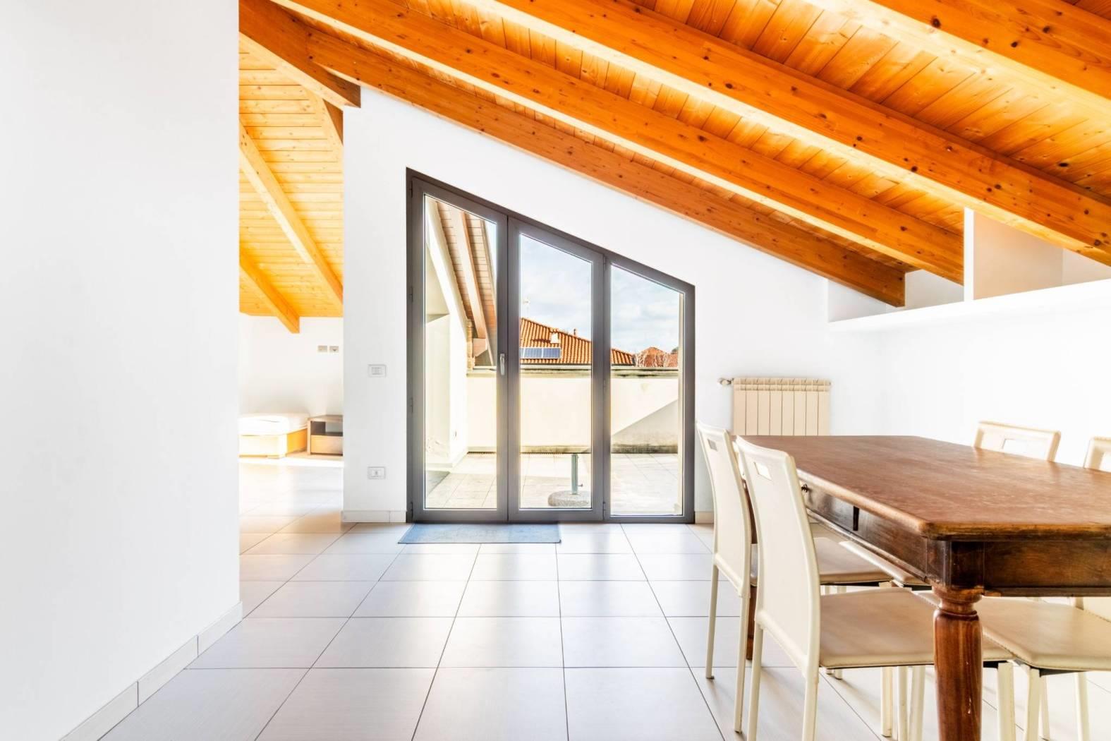 GIUSSANO frazione Paina, zona residenziale ma allo stesso tempo comoda con tutti i principali servizi. In piccola palazzina di solo 6 unità abitative, tutta rifinita mattoni a vista, posto al piano secondo, senza ascensore, fantastico ATTICO di 113mq, tutto travi a vista, composto da: ingresso, soggiorno, sala da pranzo, cucina abitabile, disimpegno, doppi servizi finestrati, 2 ampie camere e TERRAZZO di 14mq.
