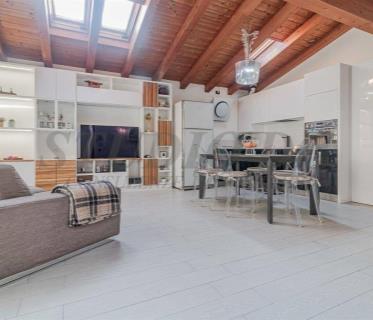 L'appartamento è composto da soggiorno con ampio balcone angolare vivibile e coperto, cucina abitabile, disimpegno, camera matrimoniale, cameretta di generosa metratura e bagno con doccia. A rendere unica nel suo genere l'abitazione è la presenza al piano mansardato di un'ambiente open space con lavanderia, servito da un comodo balcone provvisto di tende da sole da utilizzare come locale hobby.