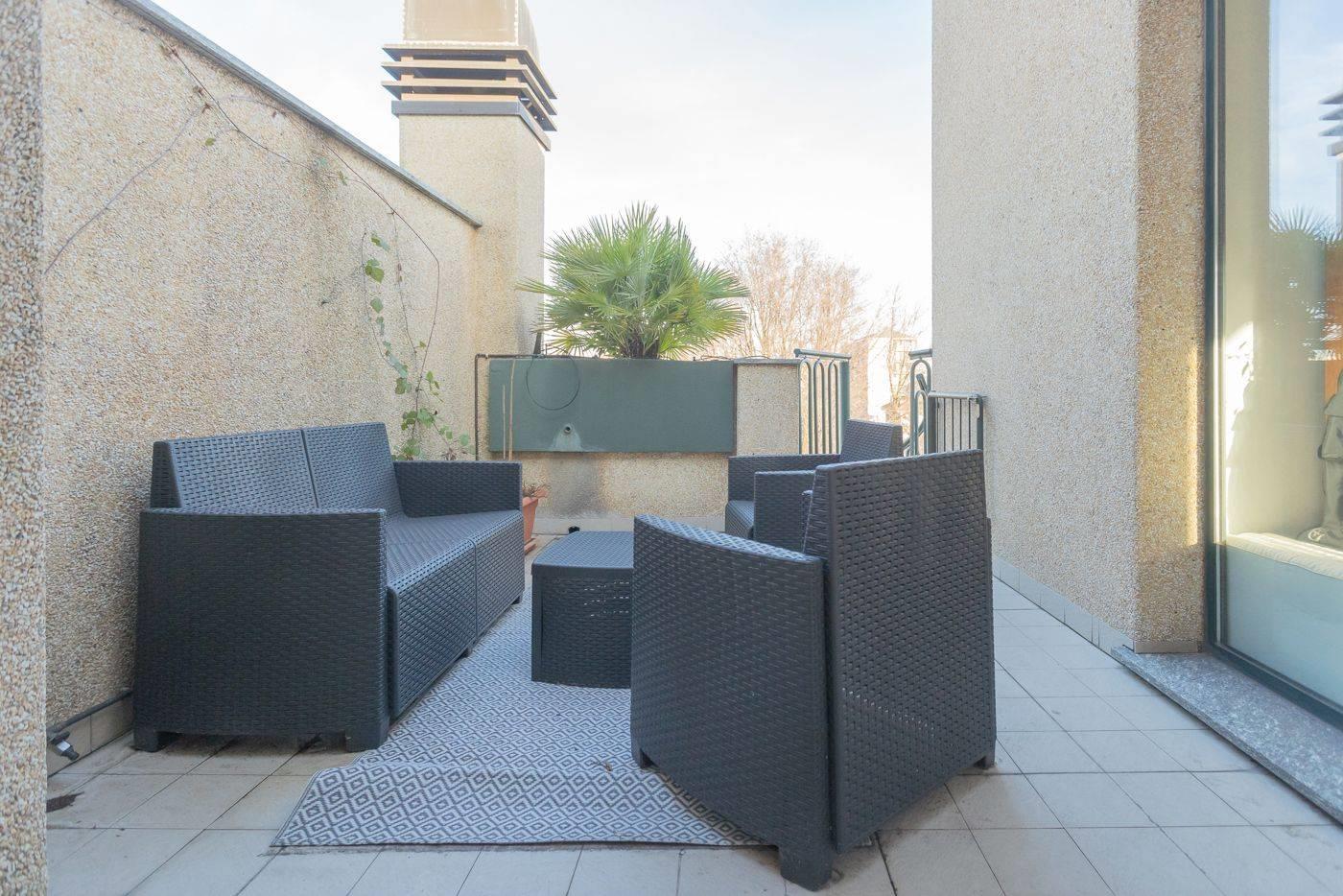 A completare la soluzione, al 4° piano troviamo un ulteriore magnifico terrazzo di 42 mq (con ripostiglio esterno di 8 mq) collegato da scala esterna al livello superiore, un altro terrazzo di 14 mq ed un balcone. Cantina.