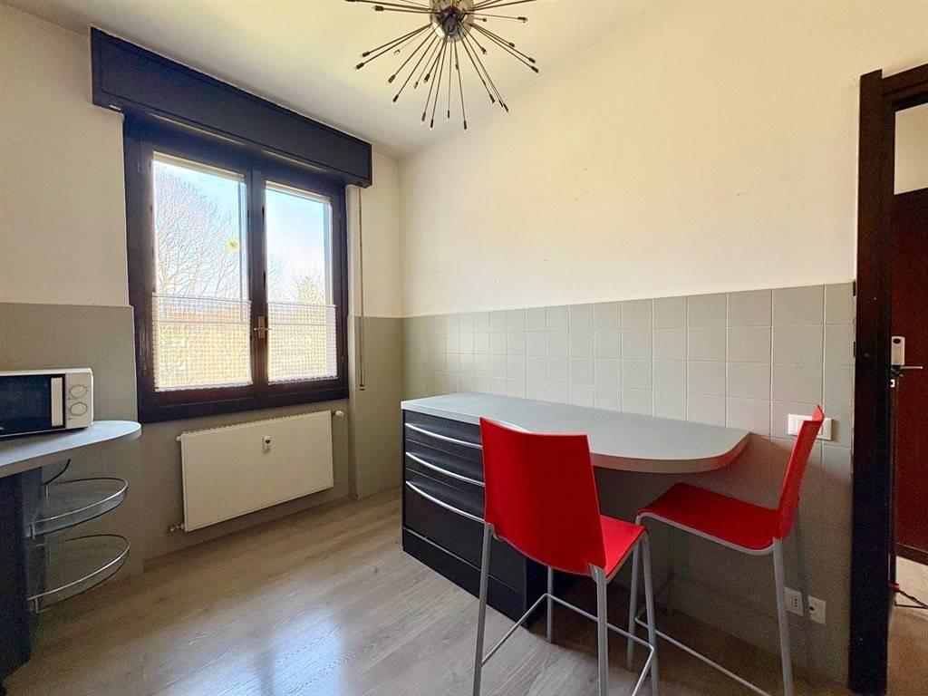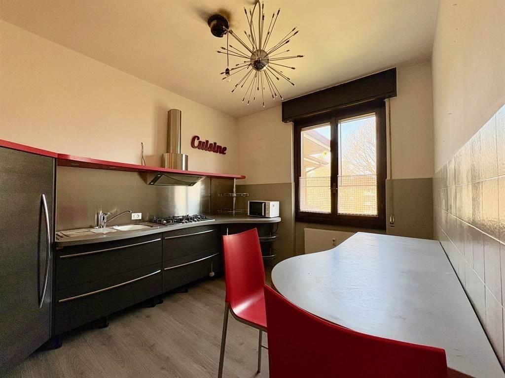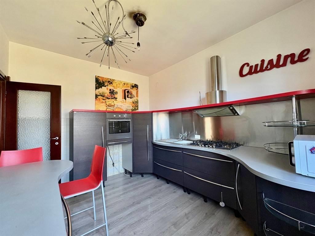 L’ingresso si apre direttamente su un ampio soggiorno, ben illuminato, affiancato da una cucina abitabile di generose dimensioni.