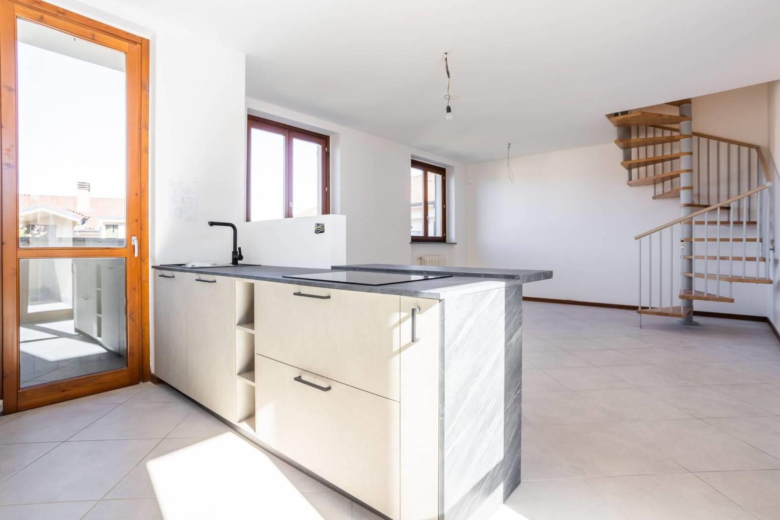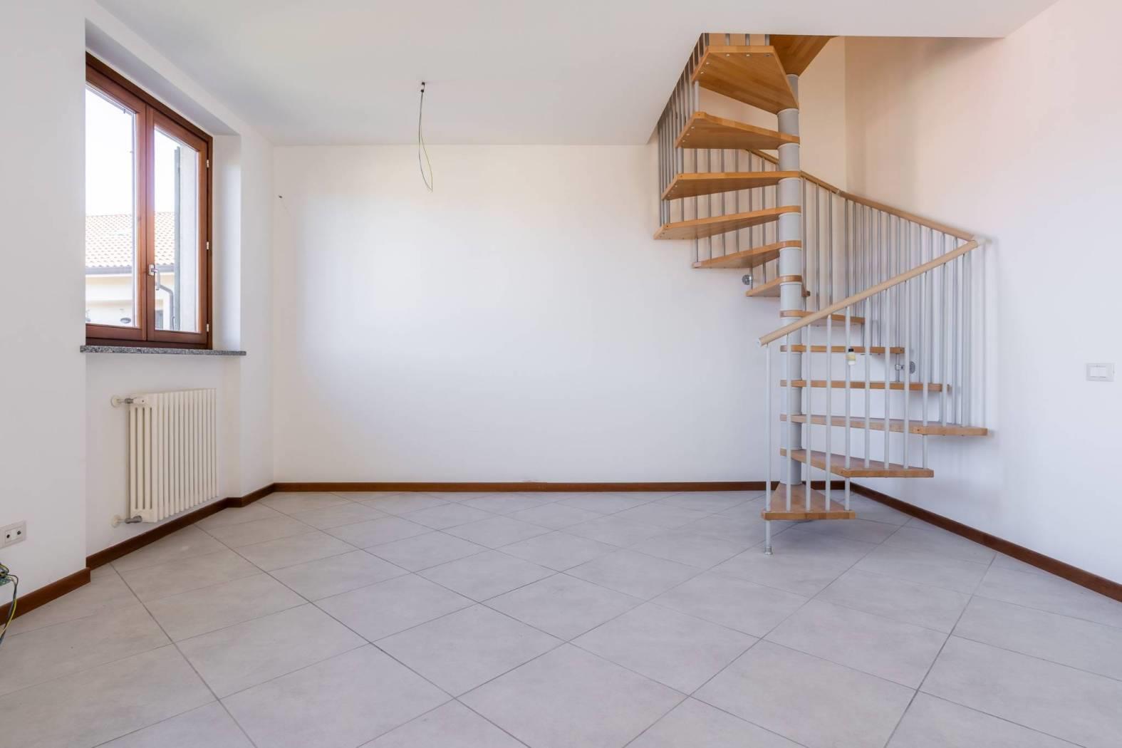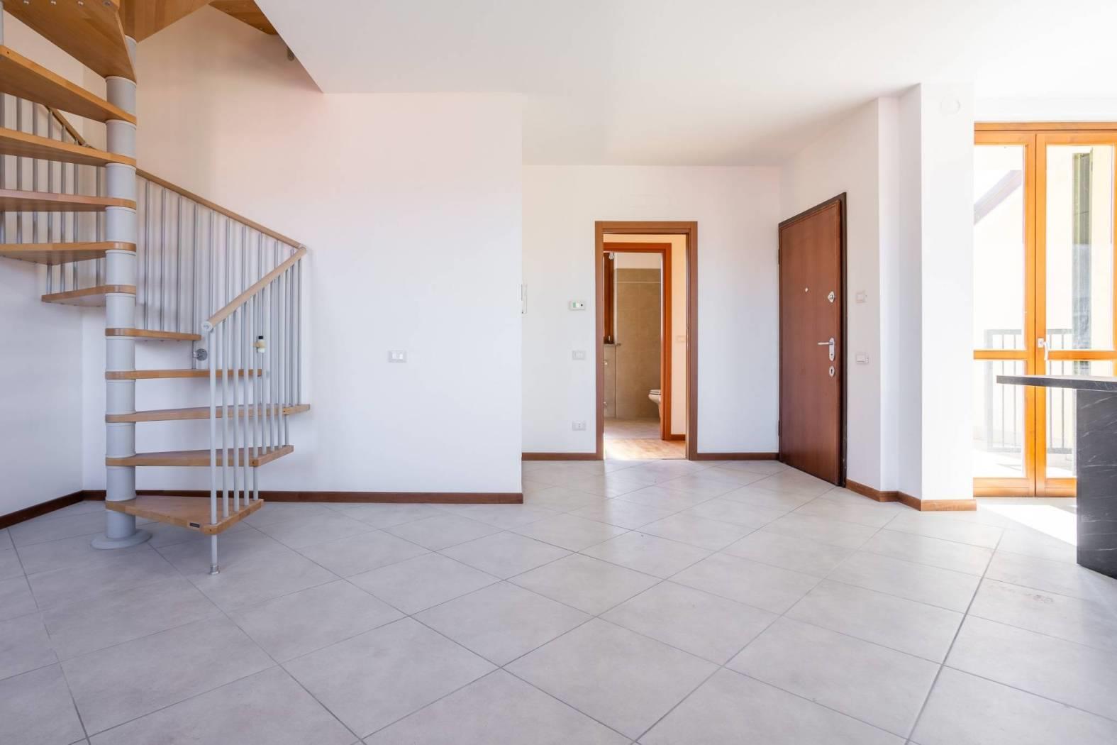 In un raffinato, recente e tranquillo complesso residenziale proponiamo in vendita, un appartamento luminoso e dal design moderno disposto su due livelli e composto di: ingresso, ampio soggiorno con cucina a vista arredata (prezzo a parte) dotata di terrazzo e balcone di servizio, disimpegno con camera matrimoniale e bagno; dal soggiorno abbiamo una comoda scala di accesso alla mansarda che si presenta con un ampio locale open-space ideale per creare una o due stanze aggiuntive e dispone inoltre di un vano dedicato ad uso bagno.