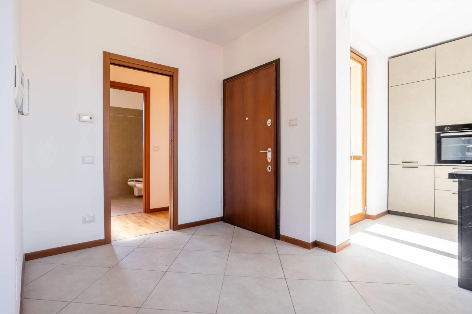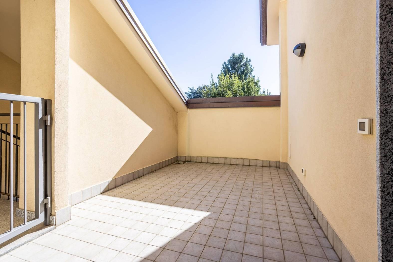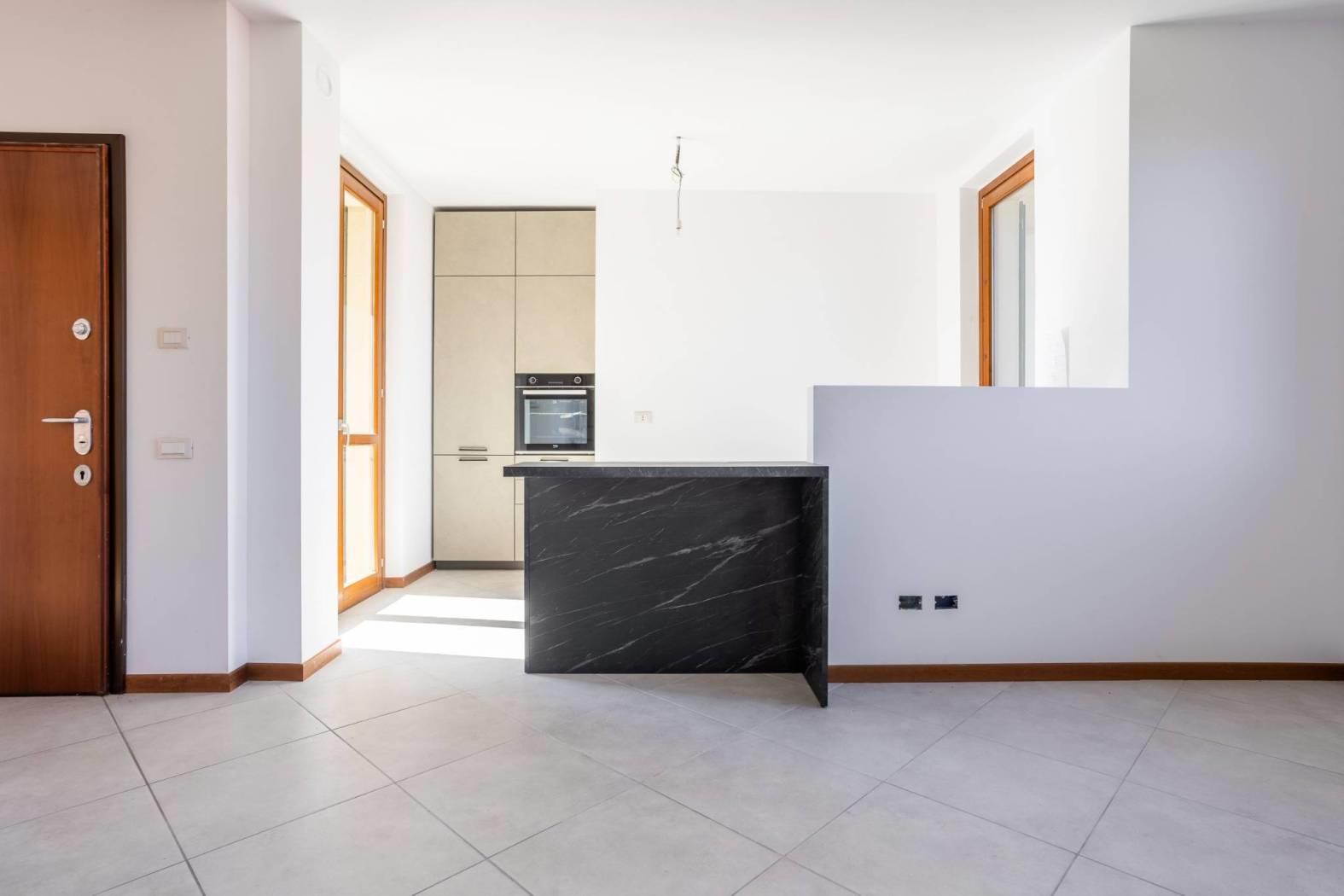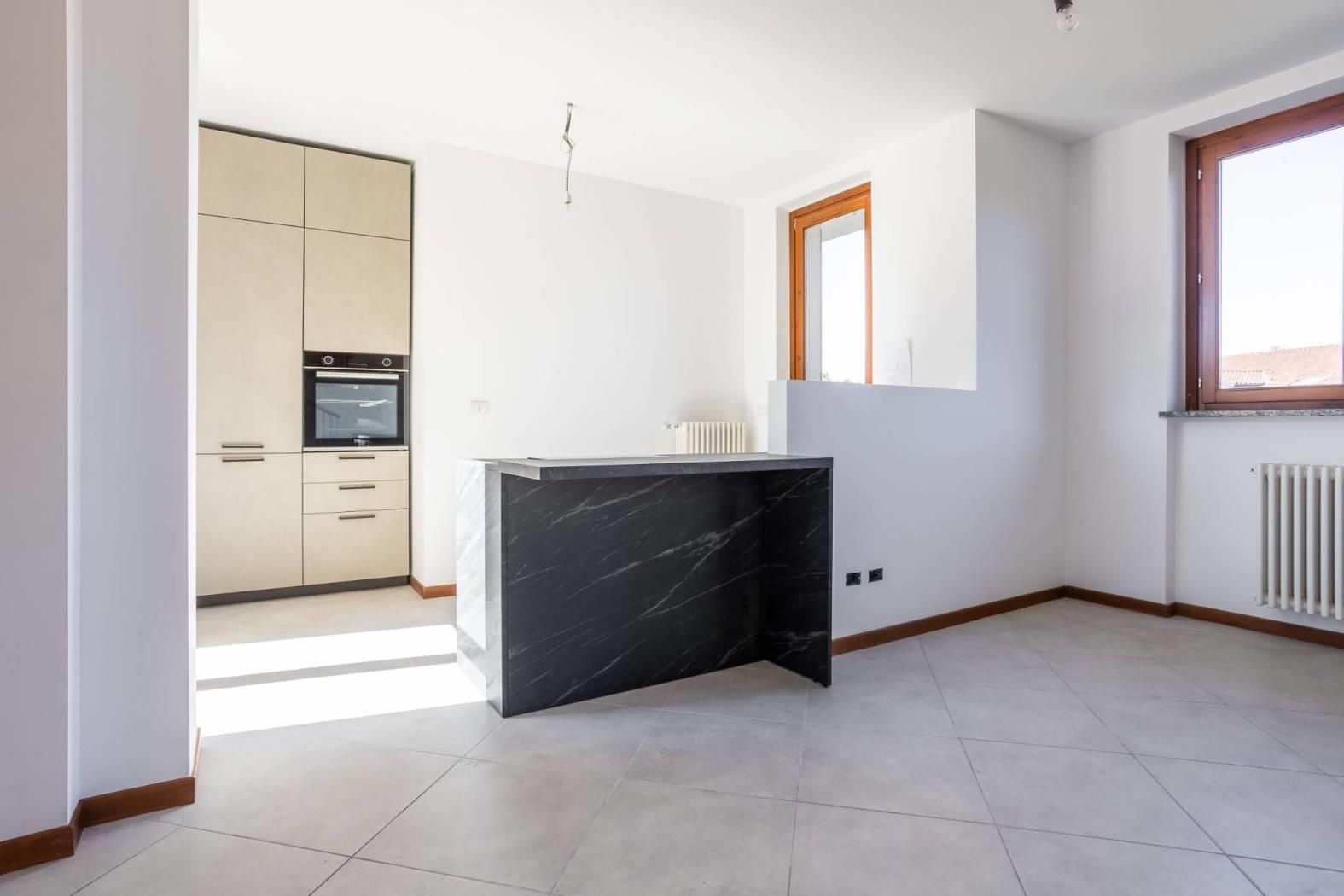 In un raffinato, recente e tranquillo complesso residenziale proponiamo in vendita, un appartamento luminoso e dal design moderno disposto su due livelli e composto di: ingresso, ampio soggiorno con cucina a vista arredata (prezzo a parte) dotata di terrazzo e balcone di servizio, disimpegno con camera matrimoniale e bagno; dal soggiorno abbiamo una comoda scala di accesso alla mansarda che si presenta con un ampio locale open-space ideale per creare una o due stanze aggiuntive e dispone inoltre di un vano dedicato ad uso bagno.