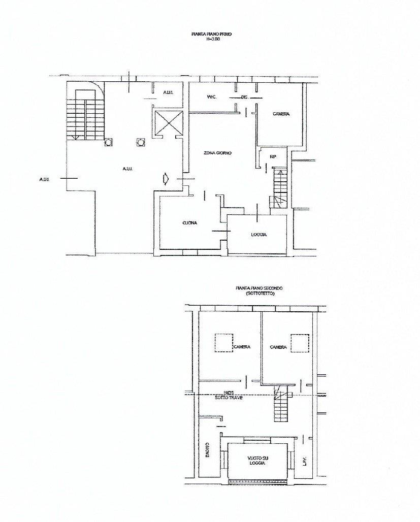 Al piano primo troviamo ingresso diretto su salone con affaccio su loggia con esposizione a SUD, cucina abitabile, funzionale ripostiglio, disimpegno con bagno finestrato e camera matrimoniale. Attraverso una scala interna si accede al piano superiore (mansarda abitabile) dove troviamo due camere da letto matrimoniali, salottino/studio, bagno e locale lavanderia.