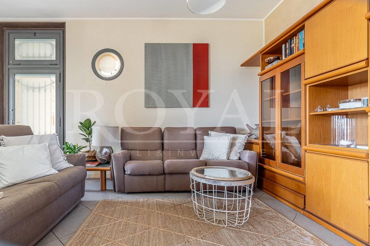 L’appartamento si presenta in perfetto stato di conservazione con ottimi materiali. Pavimenti in gress porcellanato nella zona giorno mentre nelle camere troviamo un caldo e prezioso parquet in legno Teak, inoltre si hanno finestra a doppia apertura in legno laccato con doppi vetri e persiane in acciaio/alluminio a protezione.