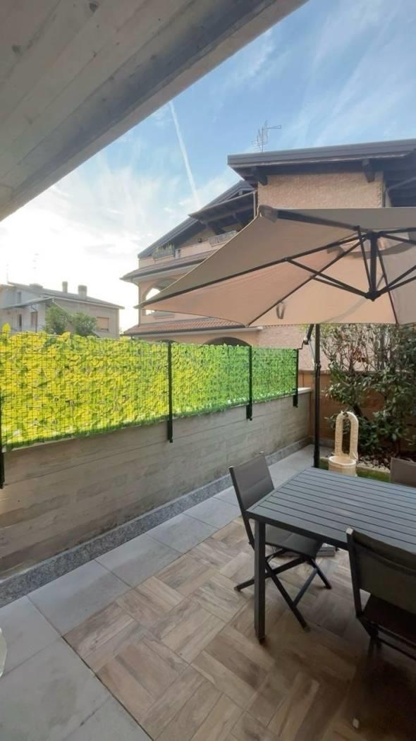 PER APPUNTAMENTI CHIAMARE IL NUMERO 0362/522044. LIBERO DAL 15/04/2026. In recente contesto sito in zona tranquilla ma comoda con tutti i servizi, proponiamo un elegante bilocale di circa 60 mq, così composto: soggiorno con cucina a vista e affaccio sul giardino di proprietà, disimpegno, camera e bagno. Completa l'immobile un'autorimessa. No animali domestici. Libero dal 15/04/2026.
