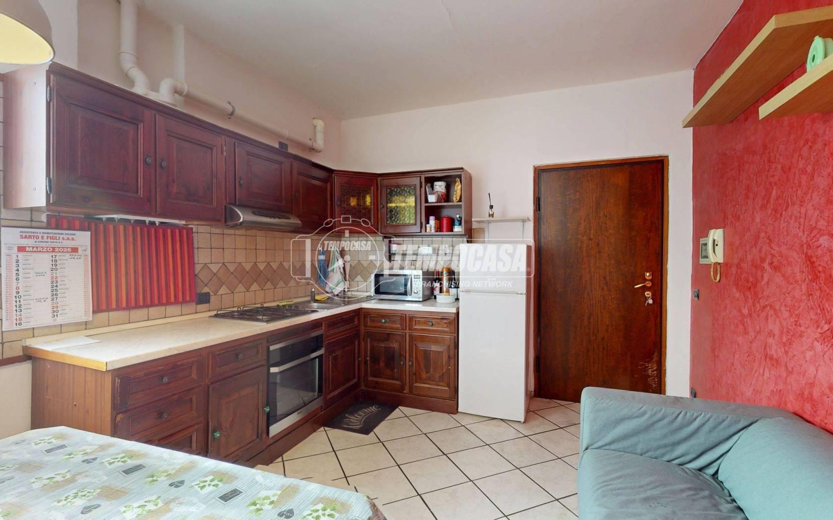 L’ingresso conduce alla zona giorno, composta da un soggiorno con cucina a vista. L’ambiente risulta accogliente e ben organizzato, permettendo di creare comodamente una zona living con divano e parete attrezzata e un’area dedicata al pranzo. La disposizione open space rende lo spazio pratico e adatto alla vita quotidiana, favorendo anche una buona luminosità degli ambienti.