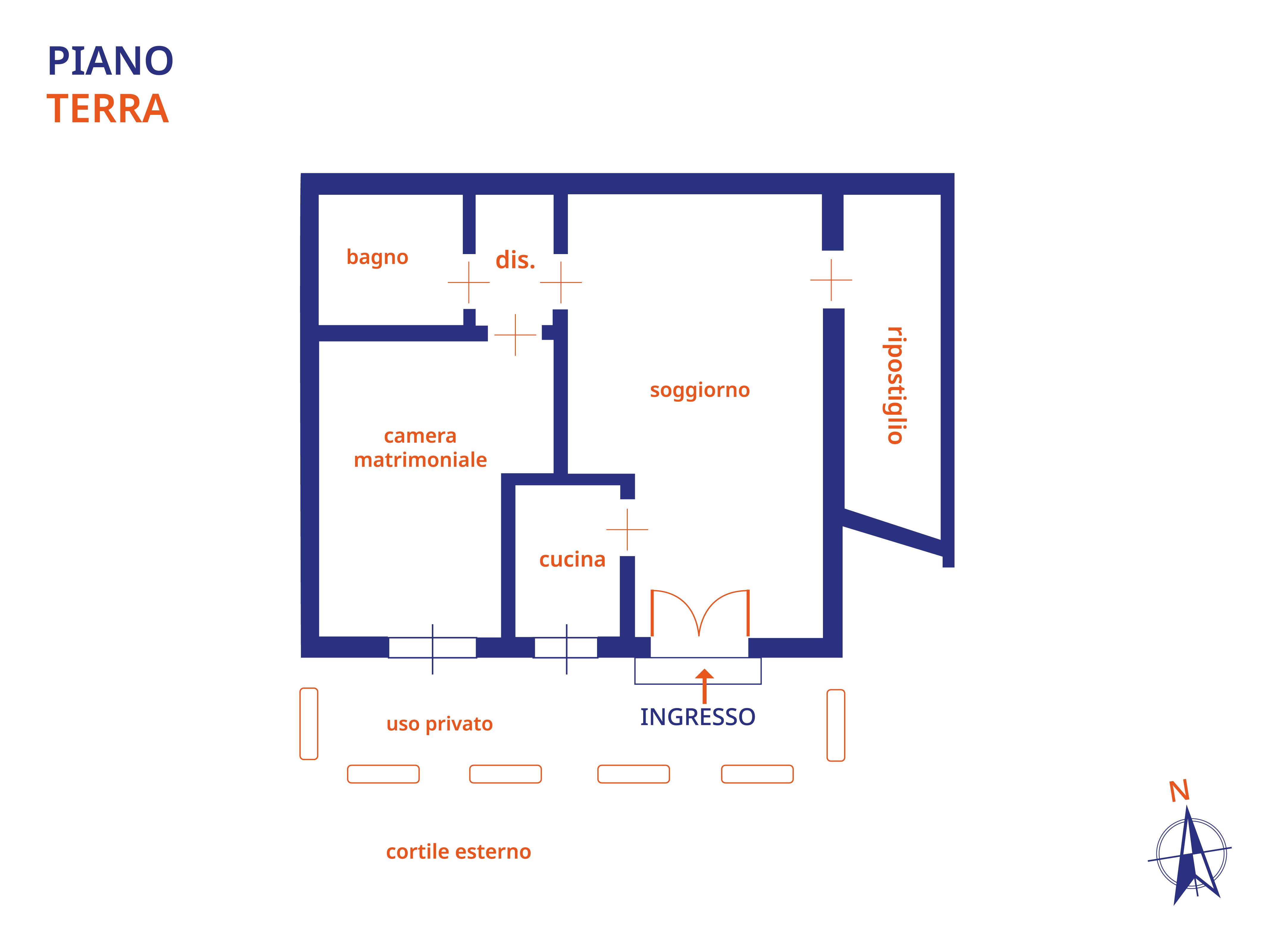 Non sono ammessi animali da compagnia. La soluzione si trova al piano terra, con ingresso da cortile interno, ed è così composta: ingresso, soggiorno con zona pranzo, cucinotto con lavastoviglie, ampio ripostiglio, disimpegno zona notte, camera da letto matrimoniale e bagno con doccia e lavatrice.